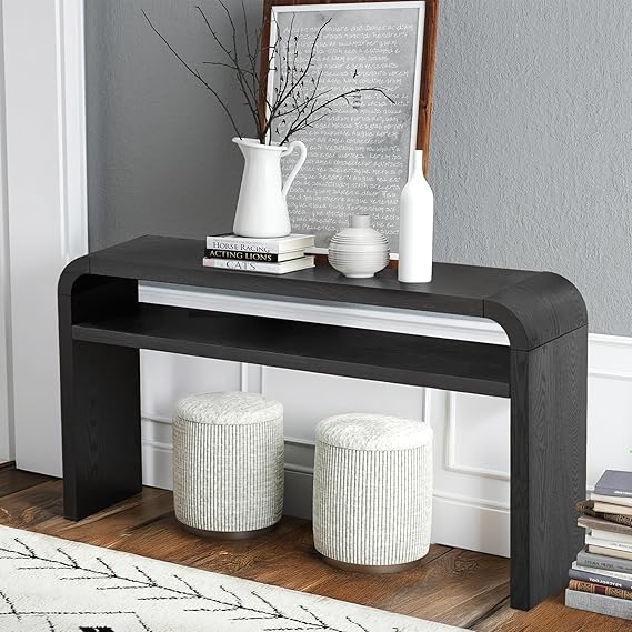 - Extra-Long Dual-Layer Design: At 59.45" long, this large console table fits perfectly in narrow spaces with an open dual-shelf design providing ample storage