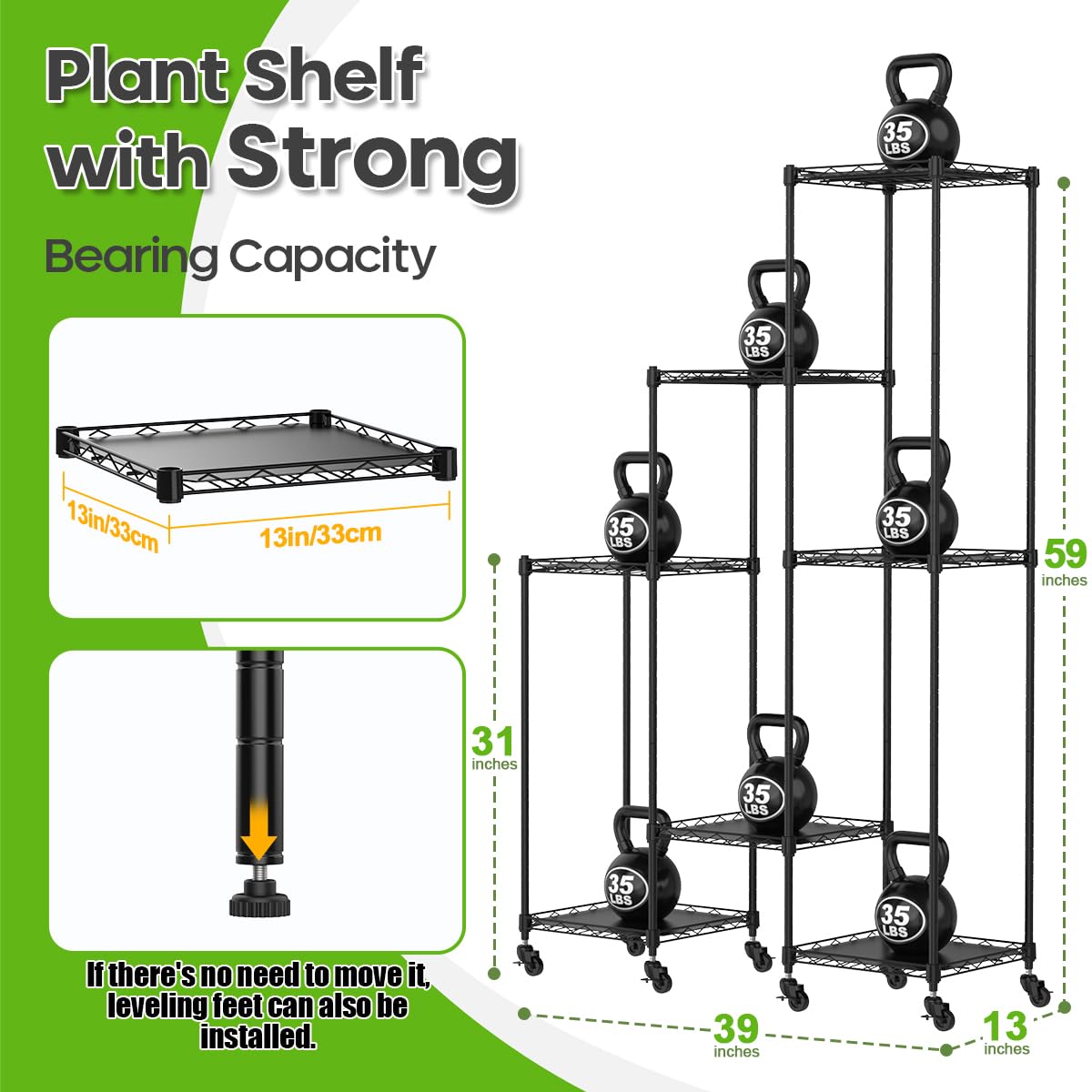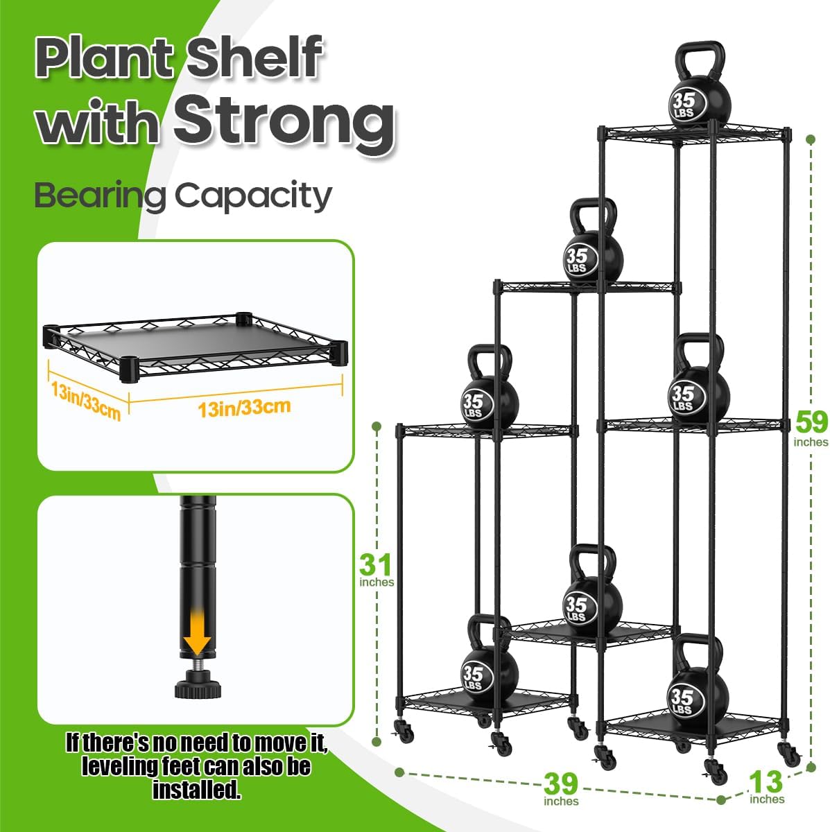 59 Inch Plant Stand with Wheels - 7 Tier Adjustable Metal Display Rack