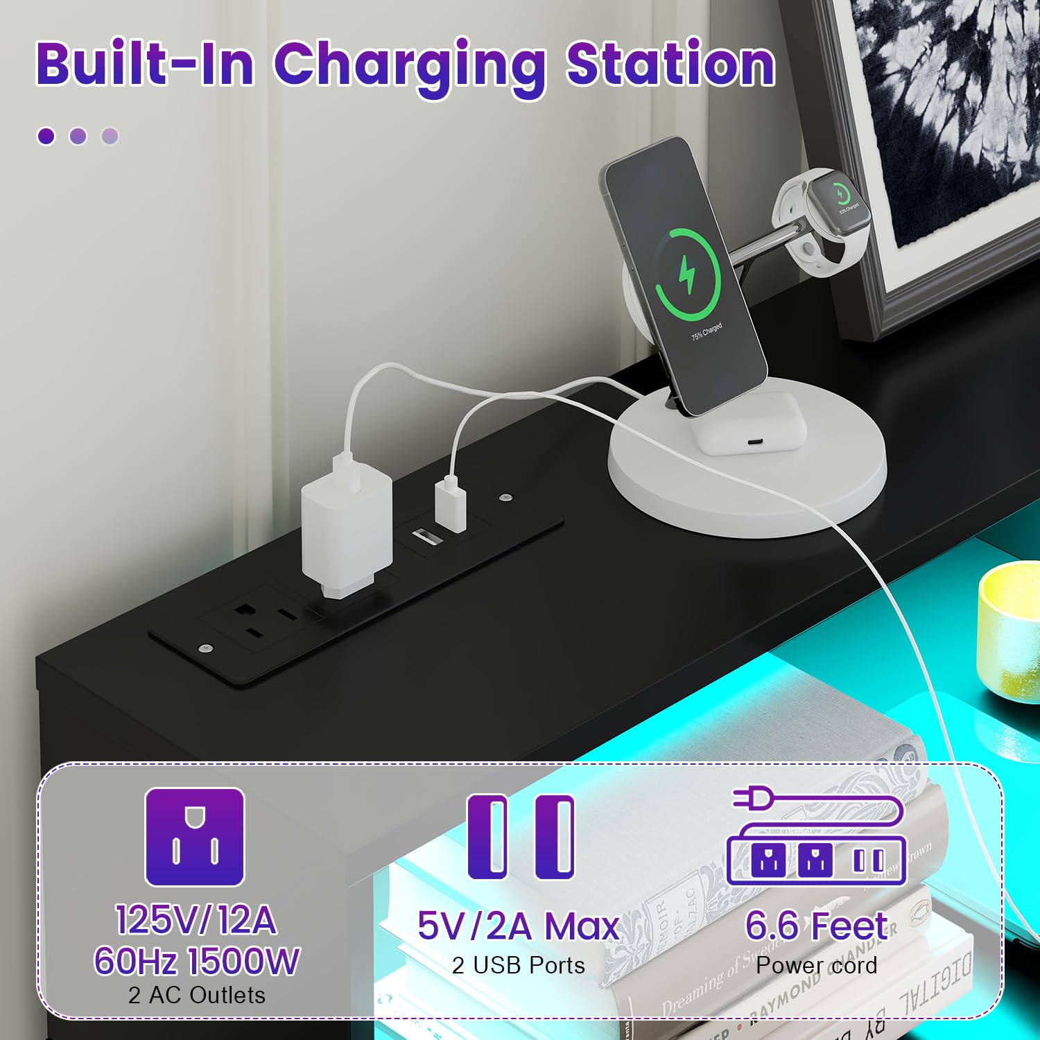 This versatile dresser provides exceptional storage capacity while enhancing your space with practical features like LED lighting and a power outlet for modern convenience.