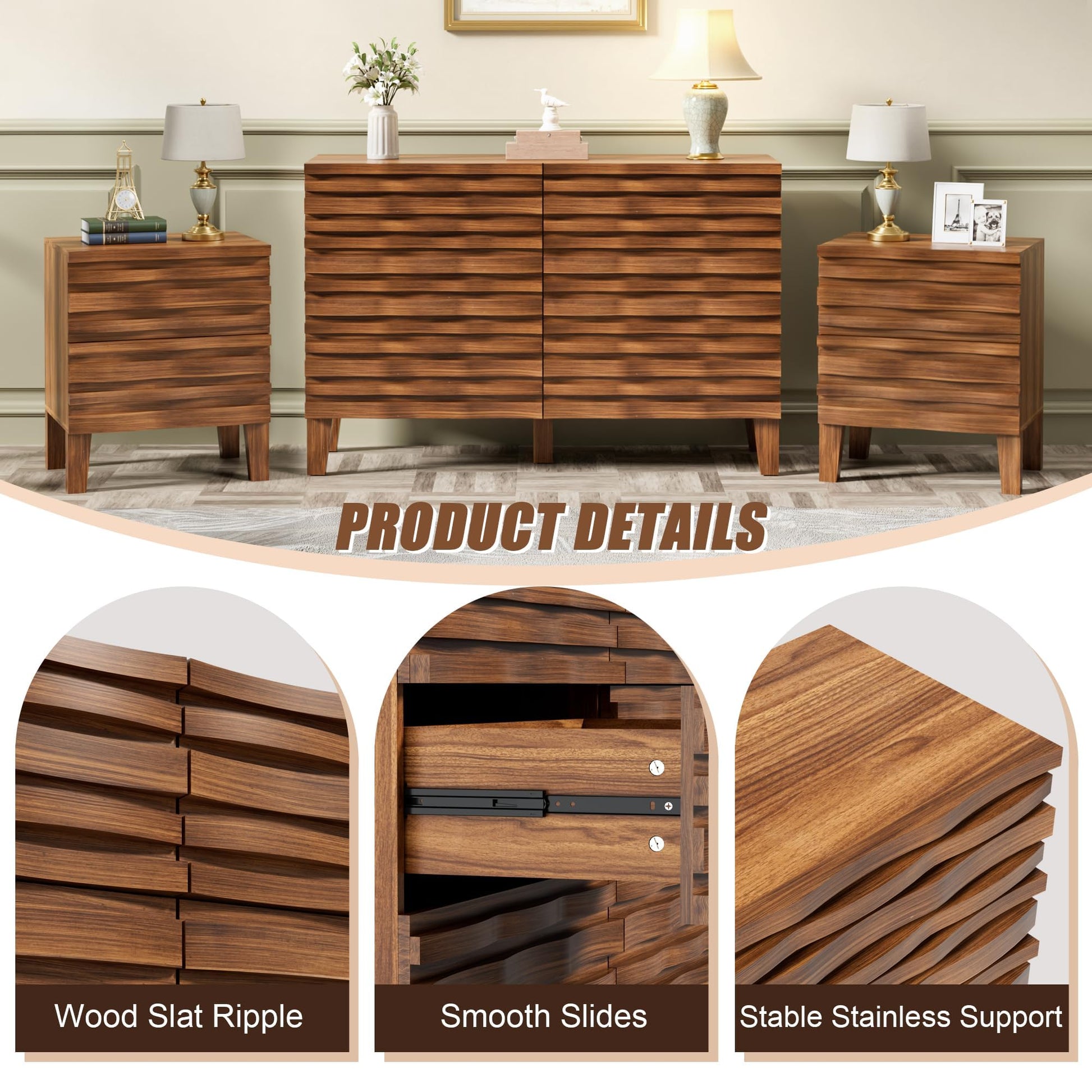 Transform your bedroom with this elegant 3-piece solid wood furniture set. Featuring a spacious 6-drawer dresser and two matching 2-drawer nightstands, this collection combines timeless mid-century design with practical storage solutions.