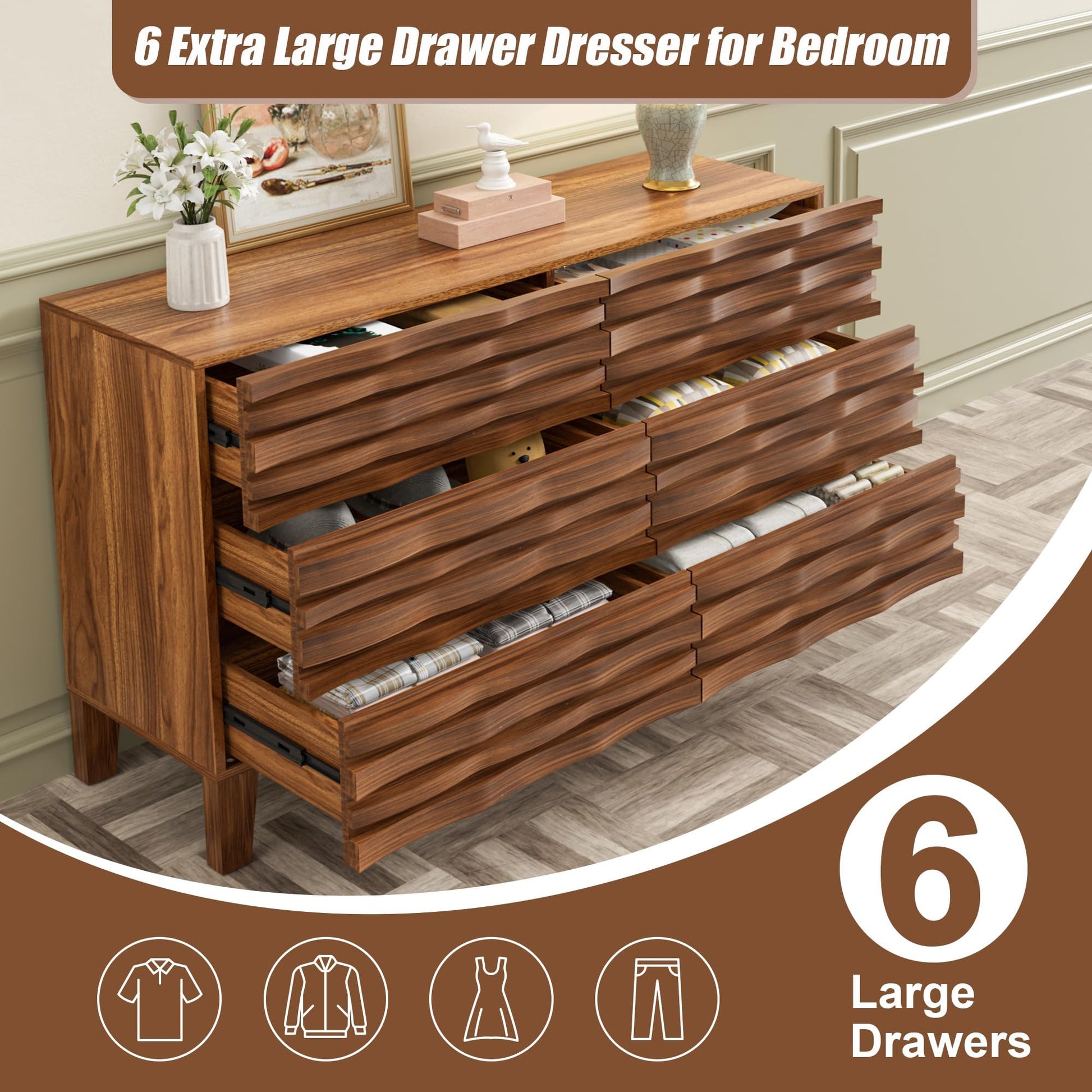 6-Drawer Dresser and Nightstand Set - Mid Century Modern Solid Wood Bedroom Furniture
