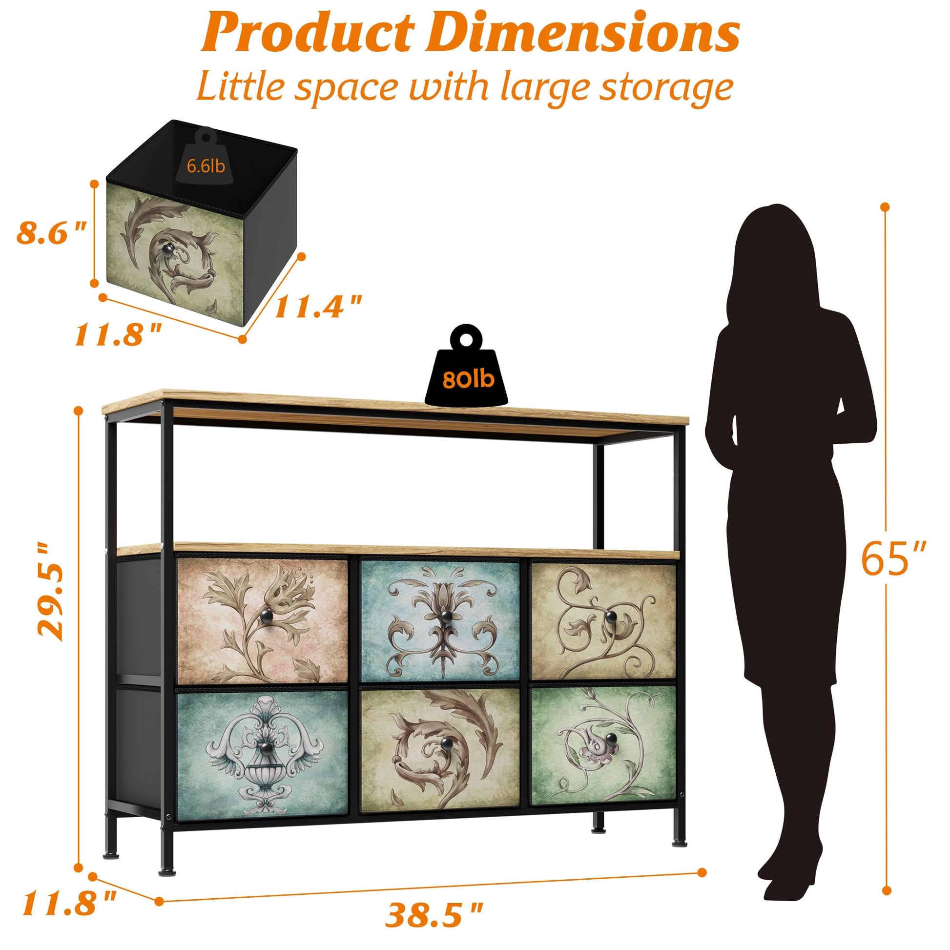 - Ample Storage: 6 spacious fabric drawers with retro floral pattern design