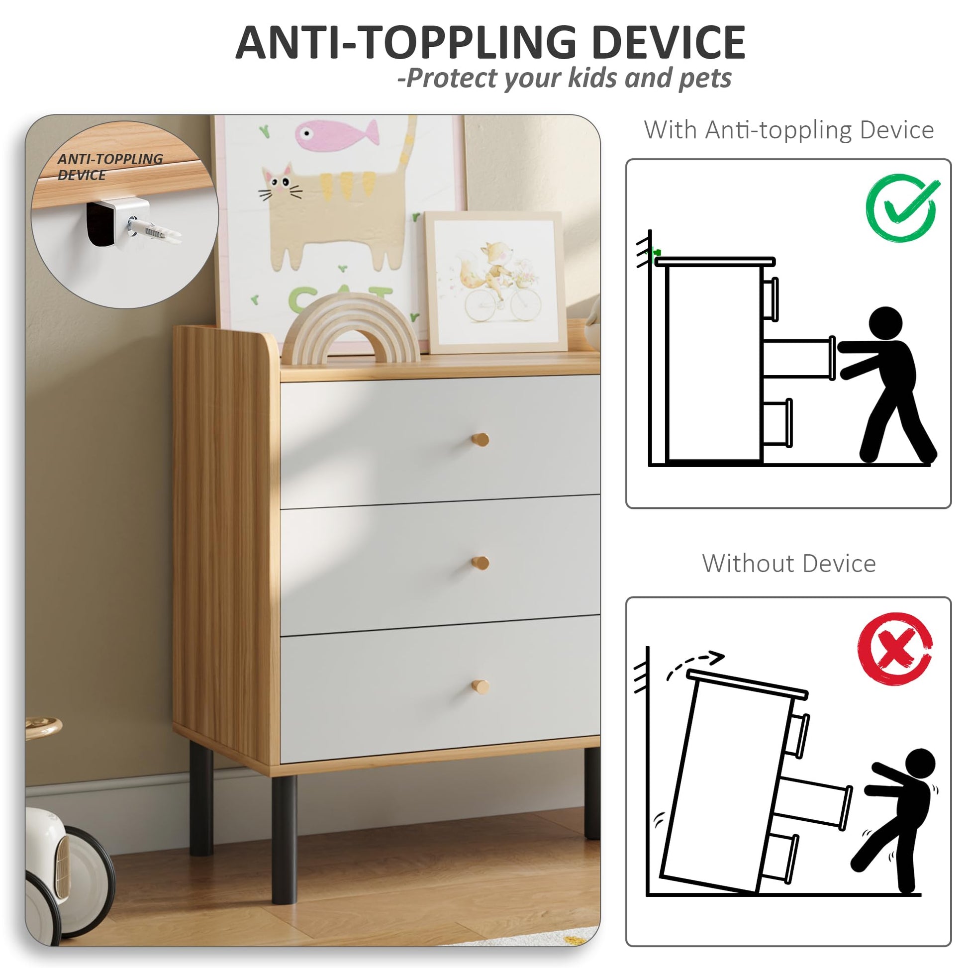 This versatile dresser is perfect for children's bedrooms, nurseries, hallways, and entryways. The clean white finish and golden accents complement various decor styles while providing essential storage solutions.