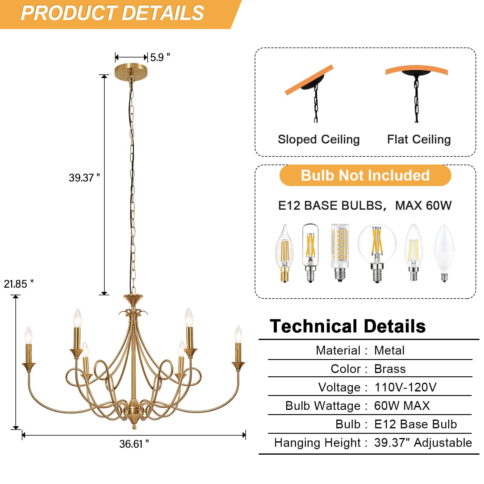 - 6-light candle chandelier design for optimal illumination