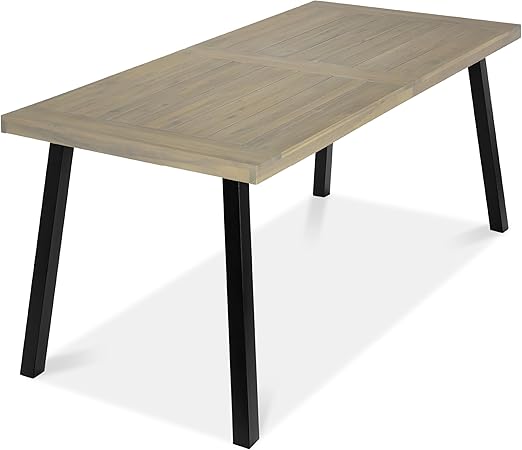 This versatile indoor/outdoor dining table combines durable acacia wood construction with a modern rustic design. Perfect for family gatherings, it comfortably seats up to 6 people and features weather-resistant materials built to last.