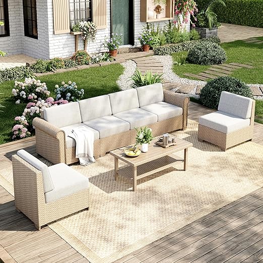 Transform your outdoor living space with this complete 6-piece rattan wicker sectional set. Designed for comfort and durability, this conversation set features weather-resistant construction and plush waterproof cushions, making it perfect for deck, patio, or backyard entertaining.