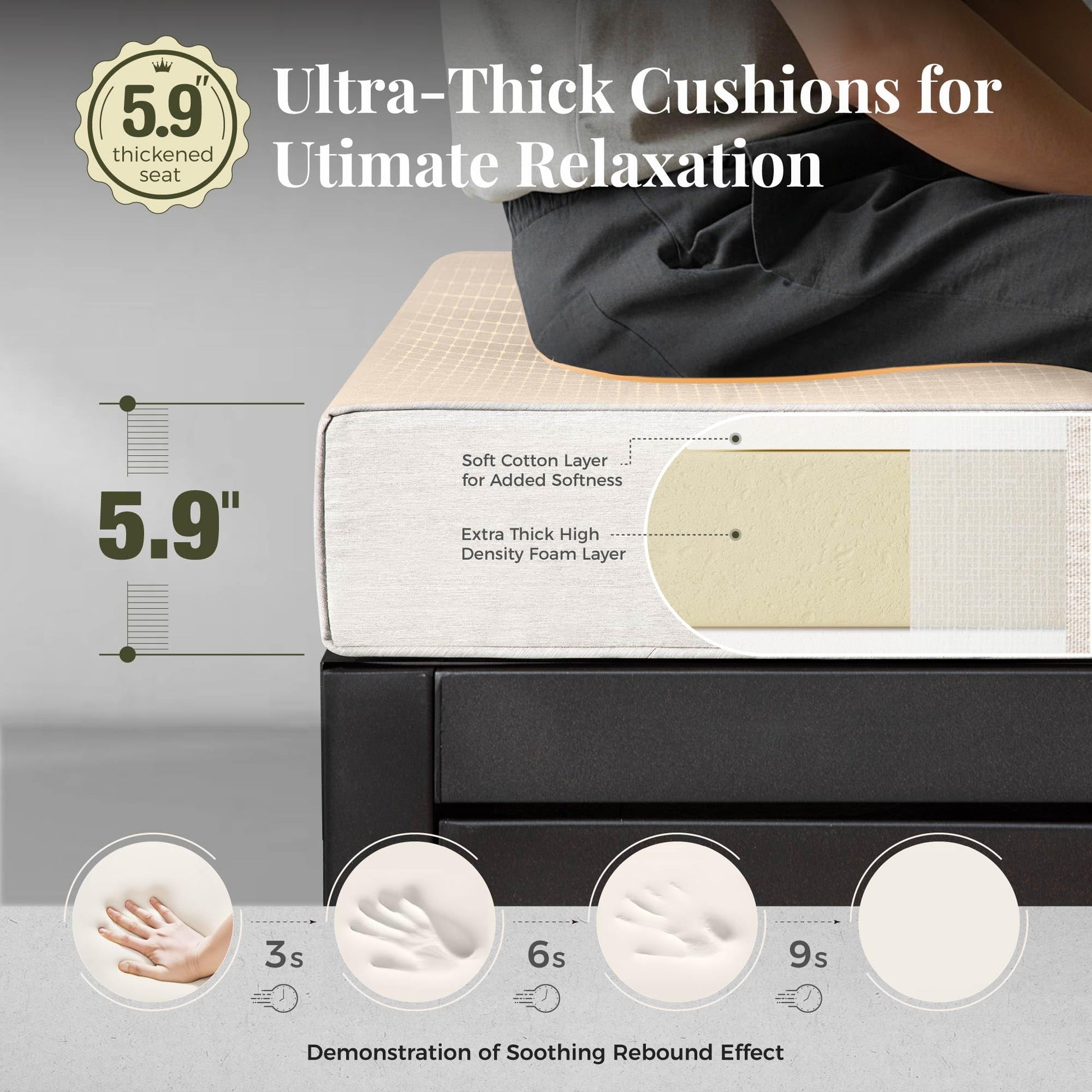 - Maximum Comfort: Features thick 5.9" cushions filled with pure 28D high-resilience sponge for lasting softness and support. Ergonomic backrest design provides unmatched relaxation.