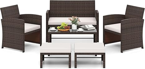 Transform your outdoor living space with this versatile 6-piece patio furniture set. This complete outdoor seating solution includes a loveseat, coffee table, two armchairs, and two multifunctional ottomans that can be arranged to perfectly complement your patio, deck, garden, or poolside area.