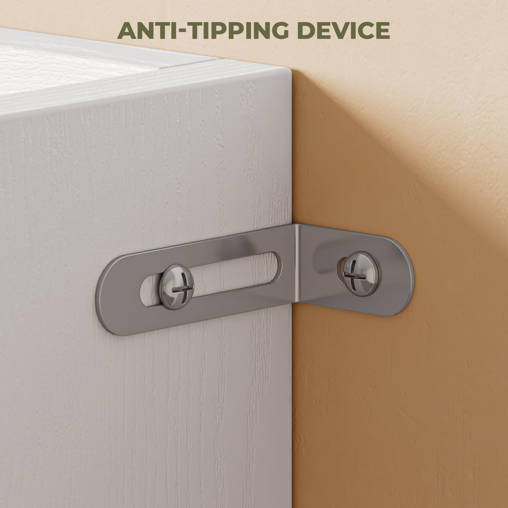 - Durable engineered wood construction with anti-tipping mechanism for safety