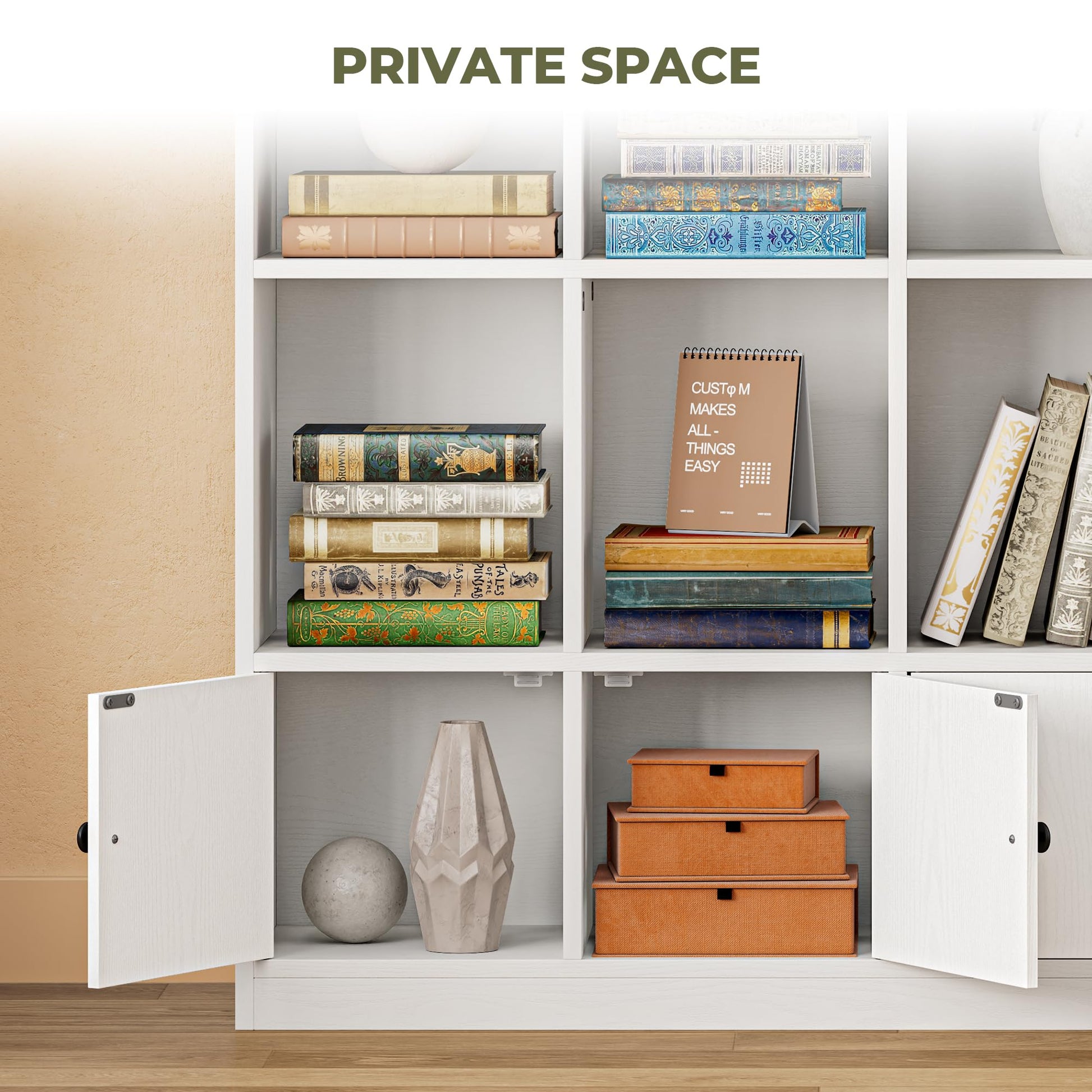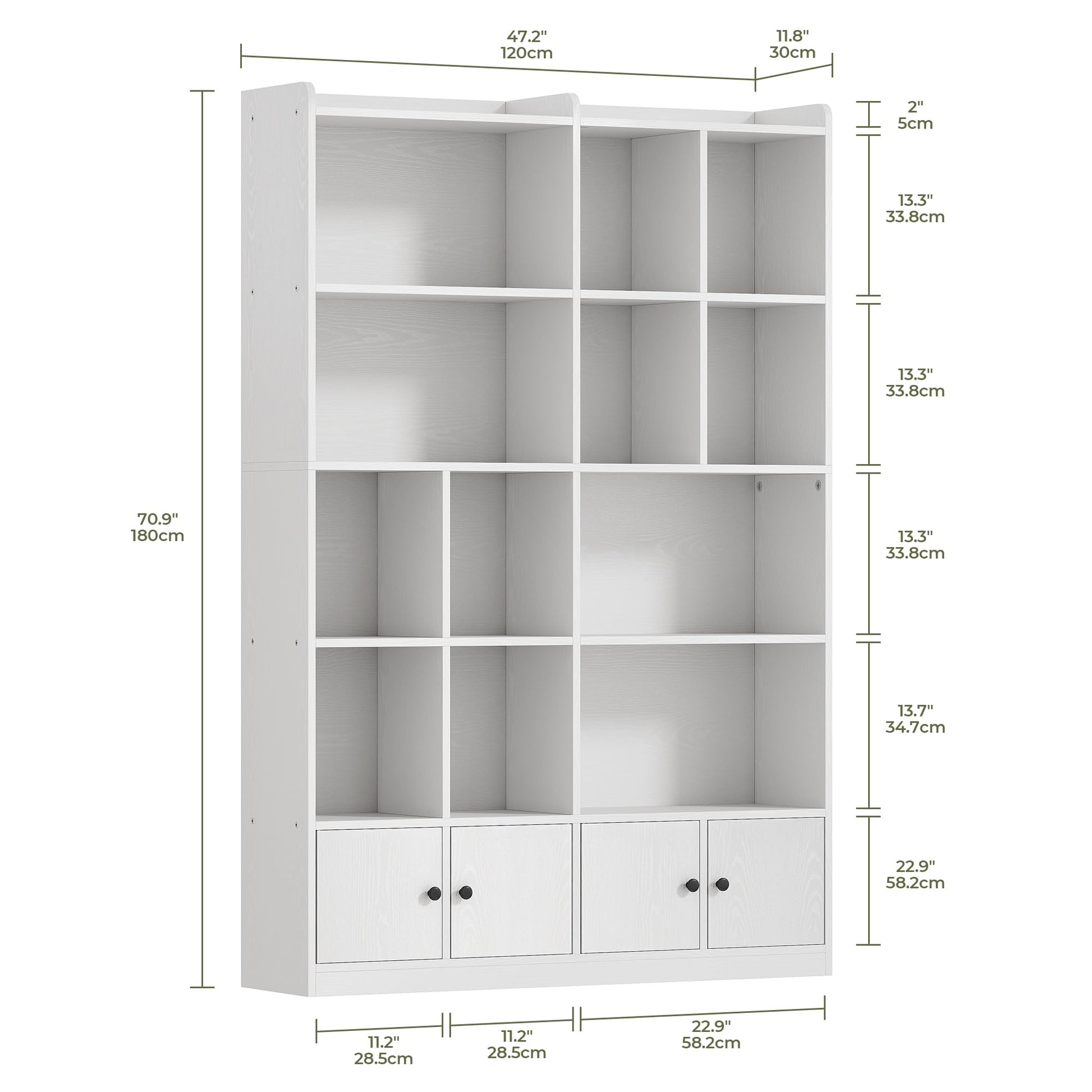This modern 6-tier bookshelf combines open shelving with enclosed cabinet storage, offering versatile organization for any room. Crafted from high-quality engineered wood with a clean white laminated finish, this tall display unit provides ample space for books, décor, and everyday essentials while maintaining a sleek, contemporary aesthetic.