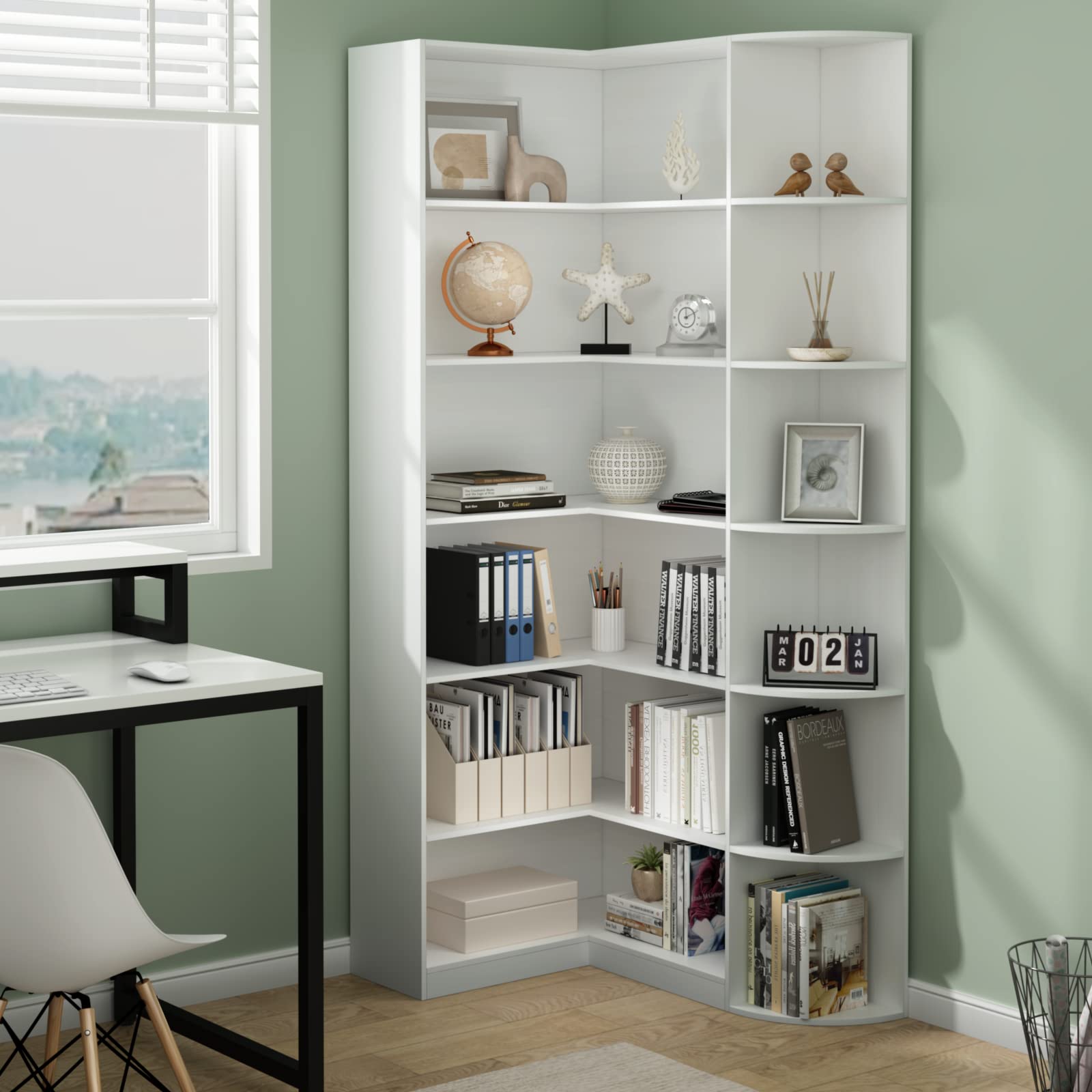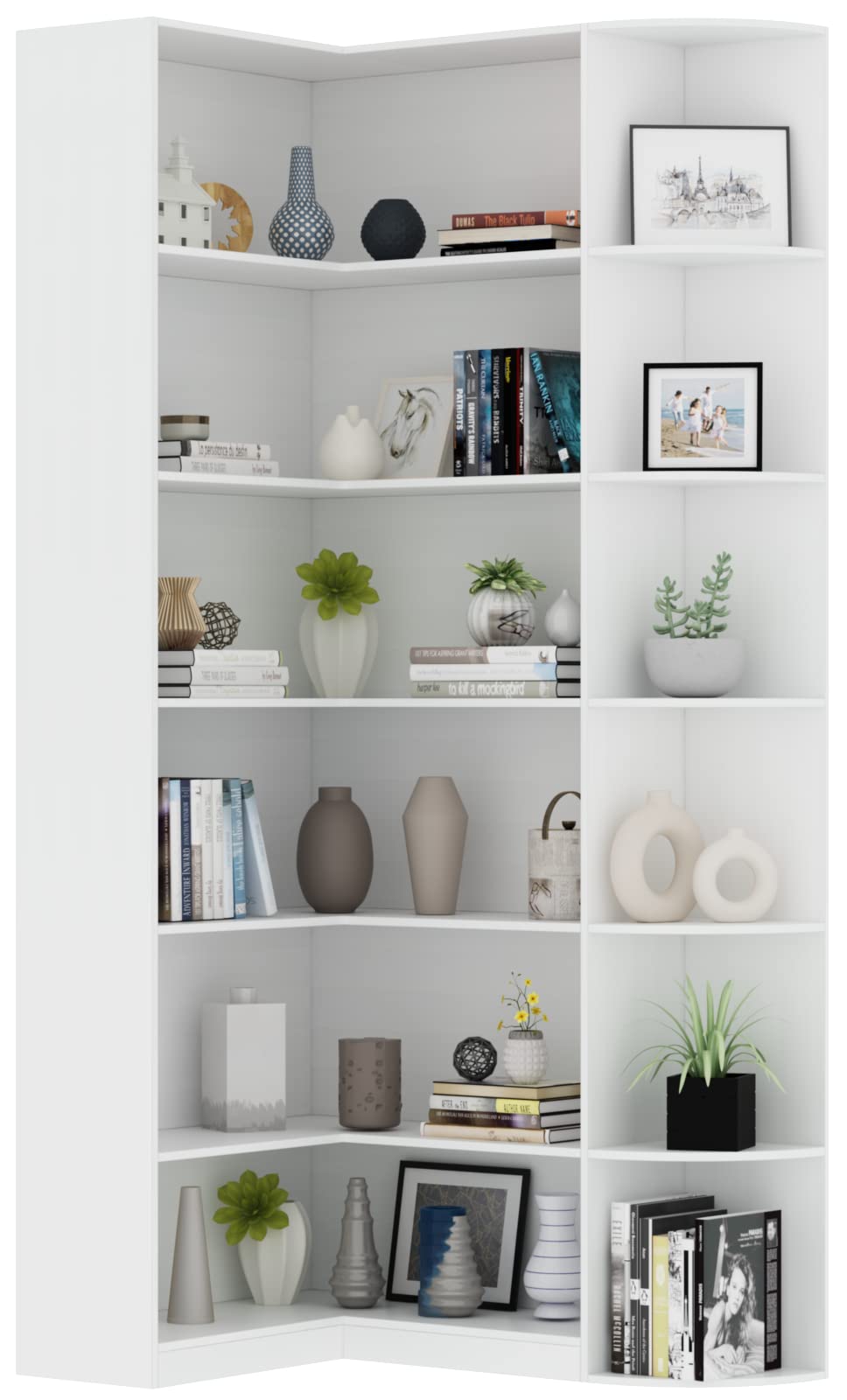 6-Tier L-Shaped Corner Bookcase with Full Baffle