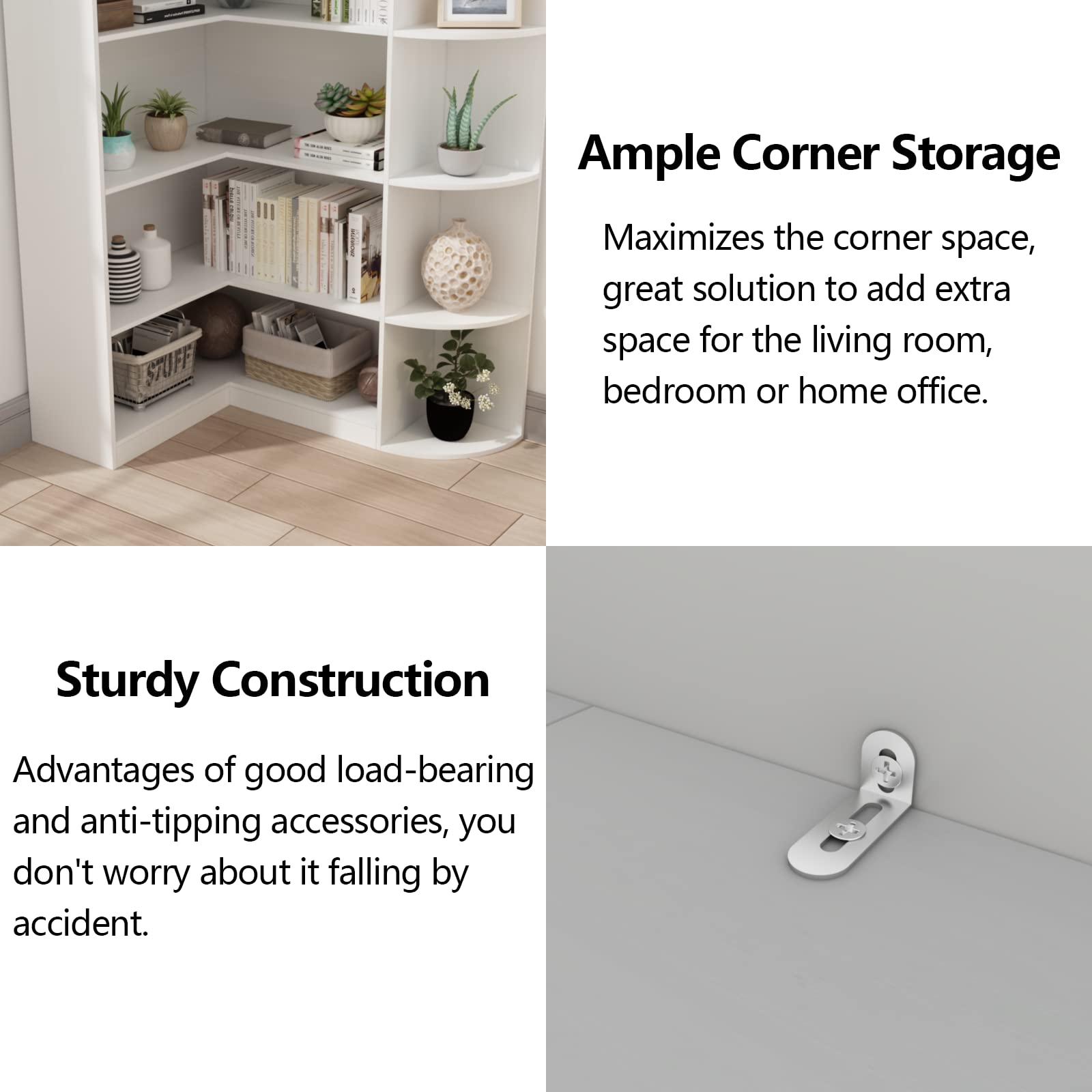 This versatile bookcase works beautifully in bedrooms for book and décor display, home offices for document organization, living rooms for showcasing collections, and kitchens for storage solutions.