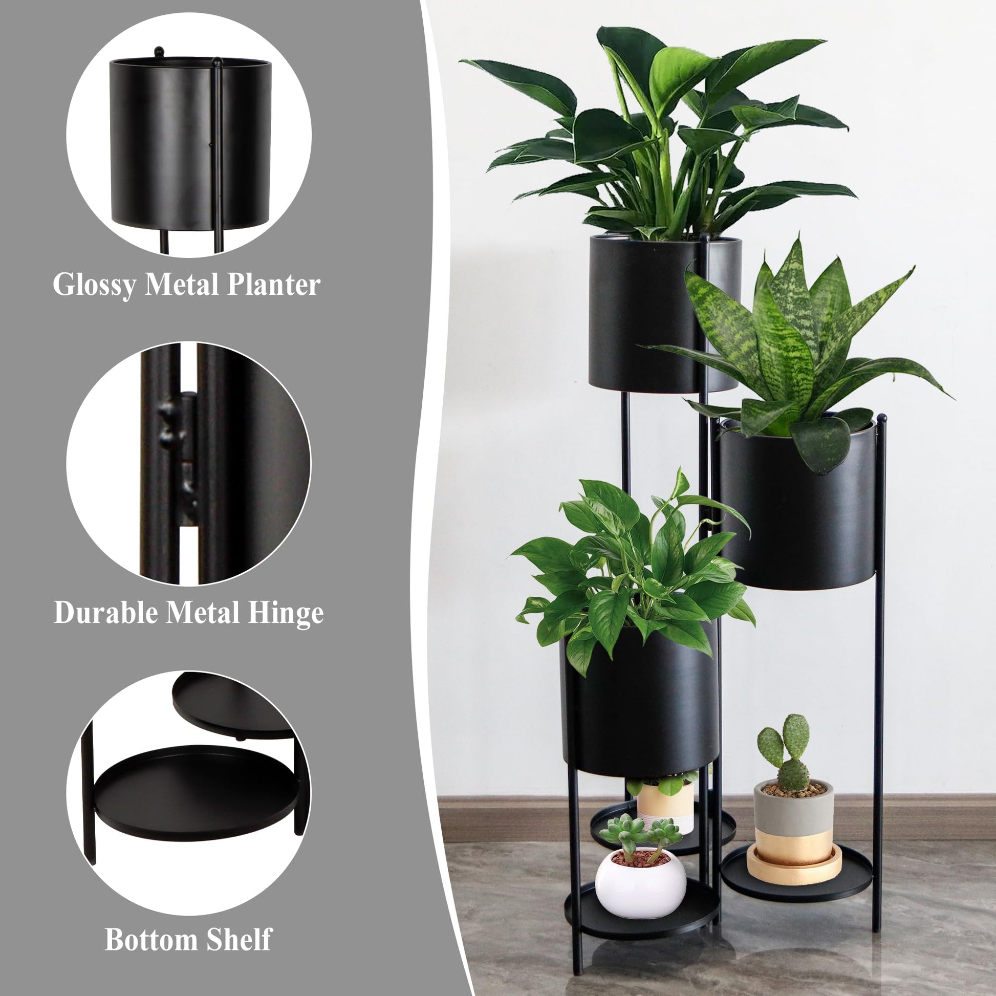 This plant stand is perfect for displaying your favorite flowers, succulents, herbs, and decorative plants while maximizing vertical space.