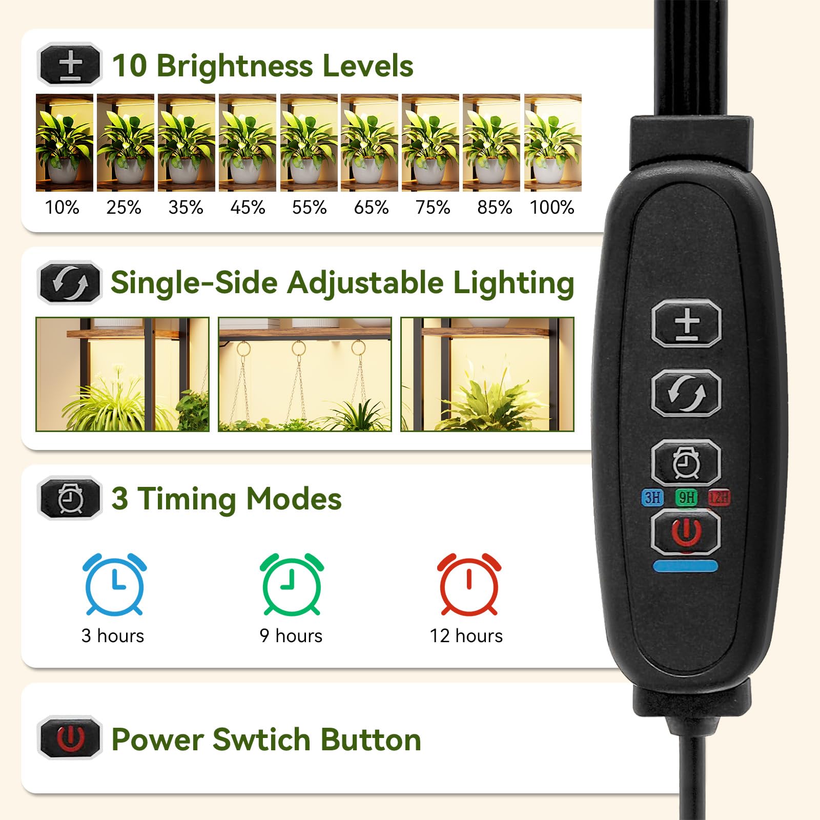 Transform your indoor gardening with this versatile 6-tier plant stand featuring integrated full-spectrum grow lights. Standing 55 inches tall, this metal plant stand provides ample space for both potted and hanging plants while ensuring optimal light exposure for healthy growth at every stage.