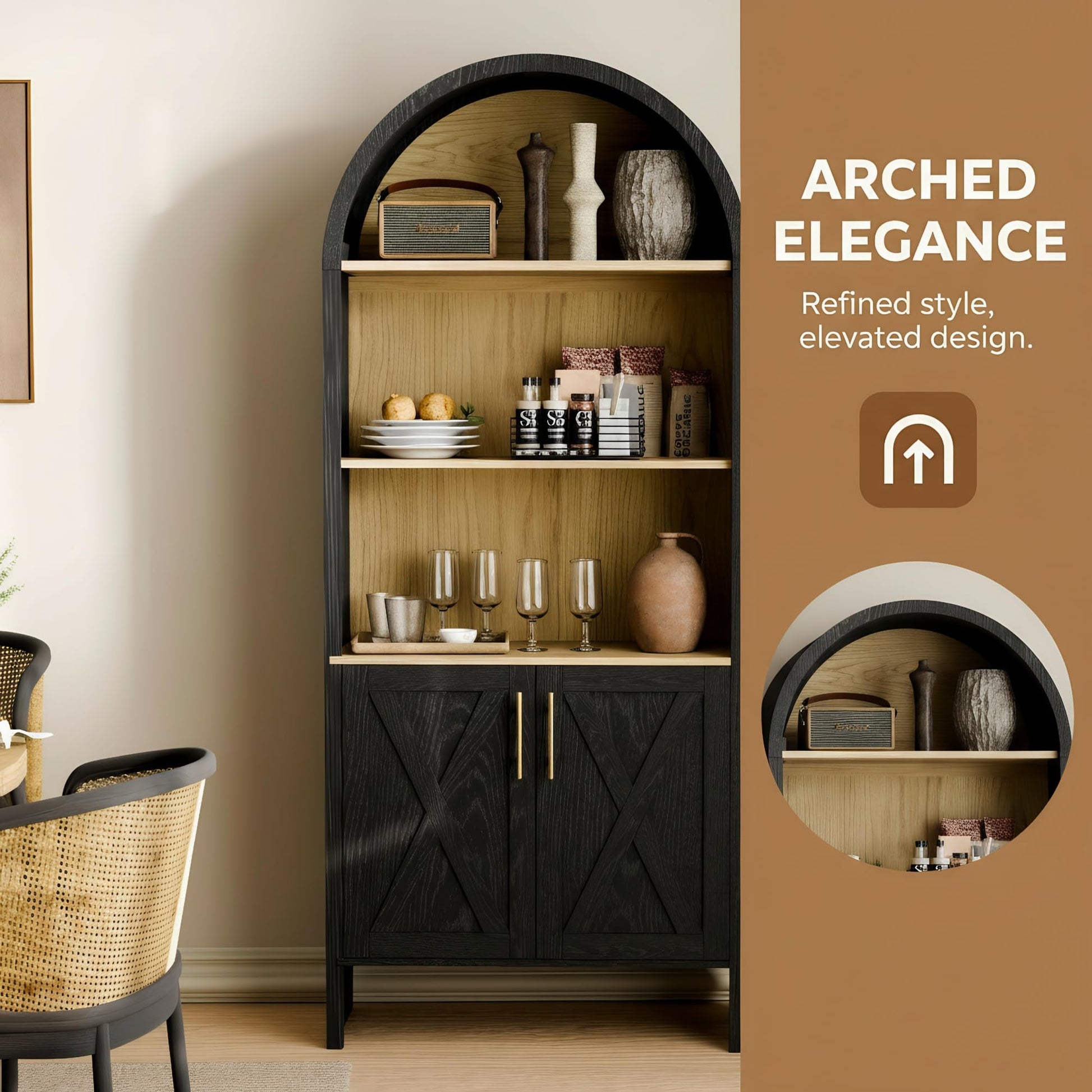 - Versatile Storage: Open arched shelves provide easy visibility and access, while closed compartments ensure privacy for stored items