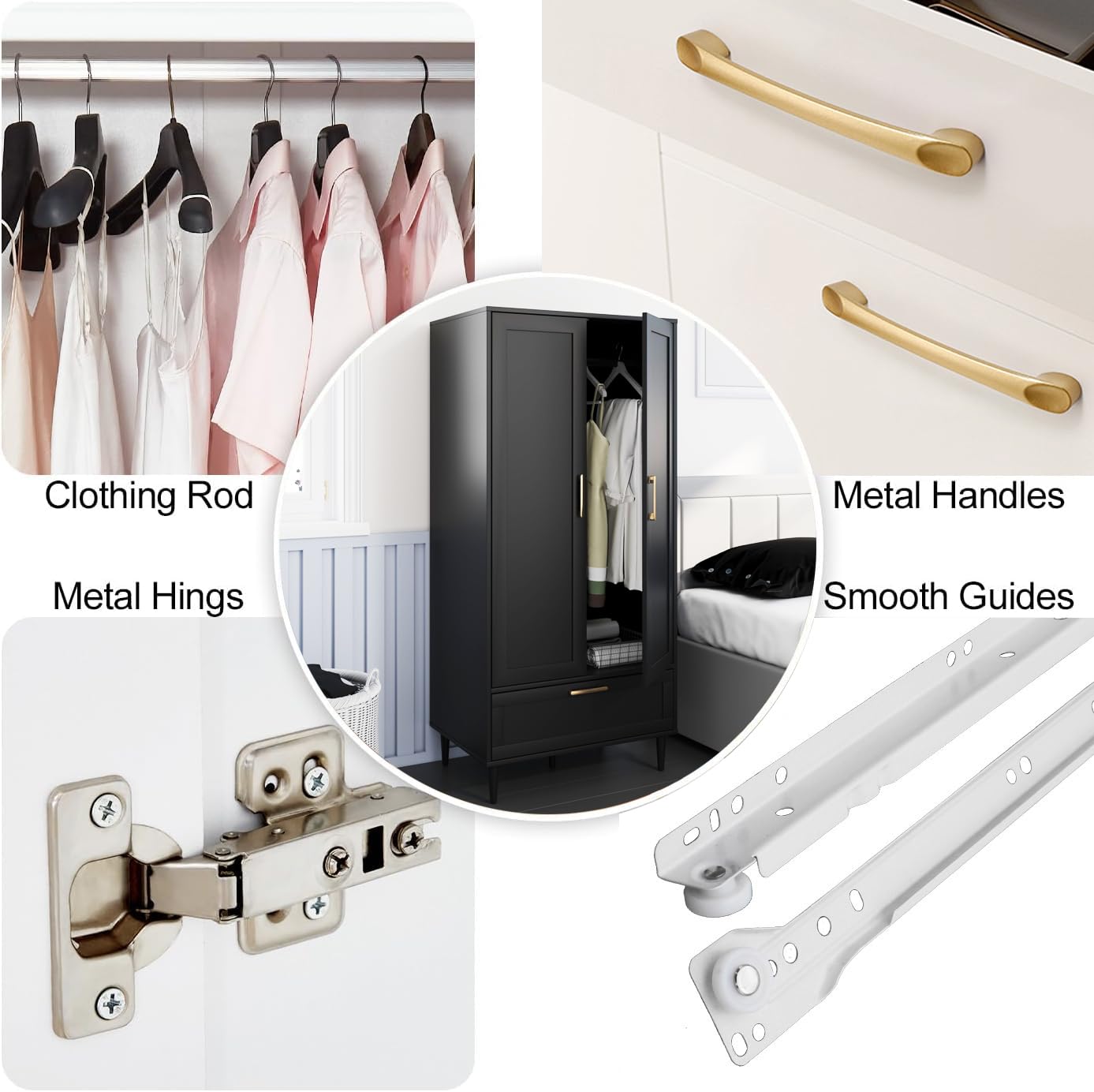 60" Bedroom Armoire Wardrobe Closet with Hanging Rod and Drawers