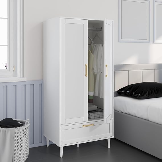 This modern wardrobe features a stylish and simple design that integrates seamlessly into any bedroom, living room, or office space, keeping clothes and supplies organized.