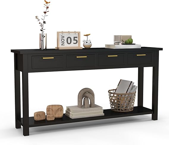 This elegant console table combines functionality with timeless design, perfect for living rooms, hallways, and entryways. Featuring a spacious 60-inch surface and four smooth-gliding drawers, it provides ample storage for everyday essentials while maintaining a sleek, sophisticated appearance.