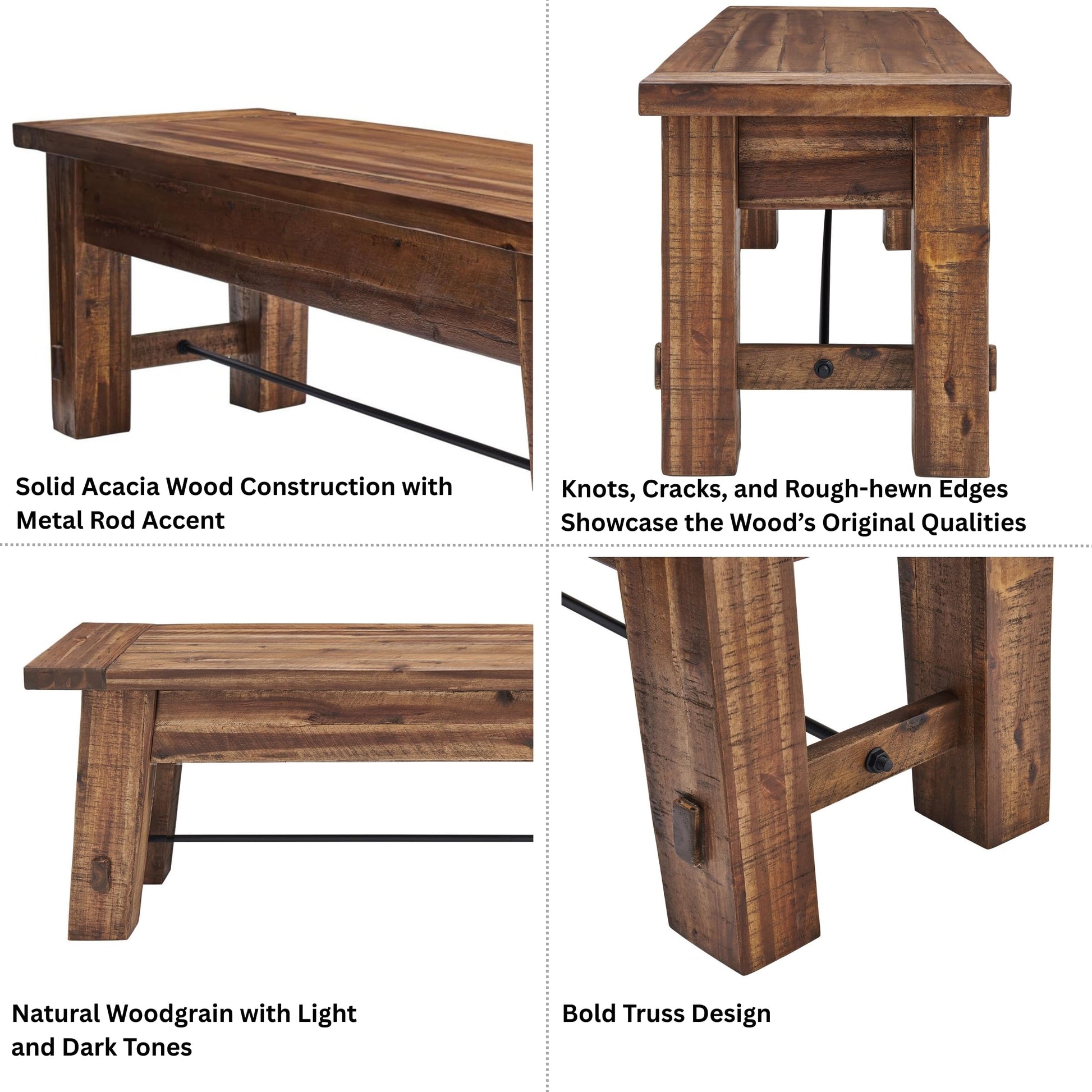 60 Inch Solid Wood Entryway Bench with Metal Accent Bar