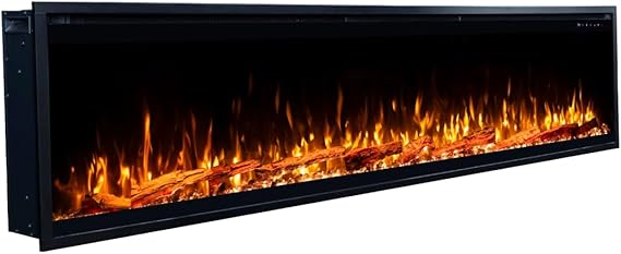 Transform your living space with this premium 60-inch smart electric fireplace designed for both wall-mount and recessed installation. Experience the ambiance of a real fire with advanced flame technology and customizable lighting options.