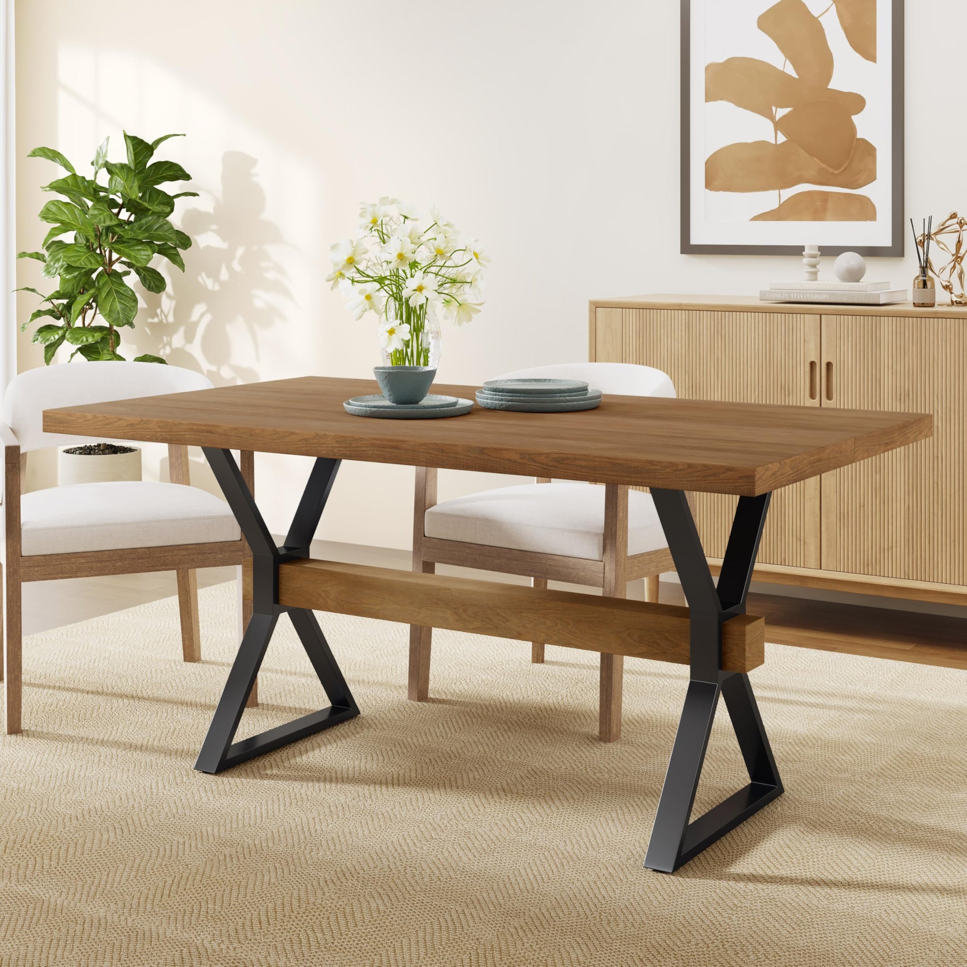 - Seats 6 Comfortably: The natural wooden knots on the tabletop add an extra layer of rustic character, enhancing the dining table's appeal in your kitchen or dining room. The wooden trestle base and X-shaped legs create a visually striking design, offering a perfect blend of minimalism and rustic elegance for any home decor.