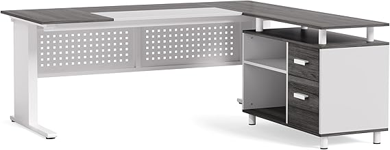 Transform your workspace with this expansive L-shaped executive desk designed for maximum productivity and organization. Featuring a generous 63-inch desktop, integrated file cabinet, storage drawer, and open shelving, this workstation provides everything you need for an efficient home office setup.