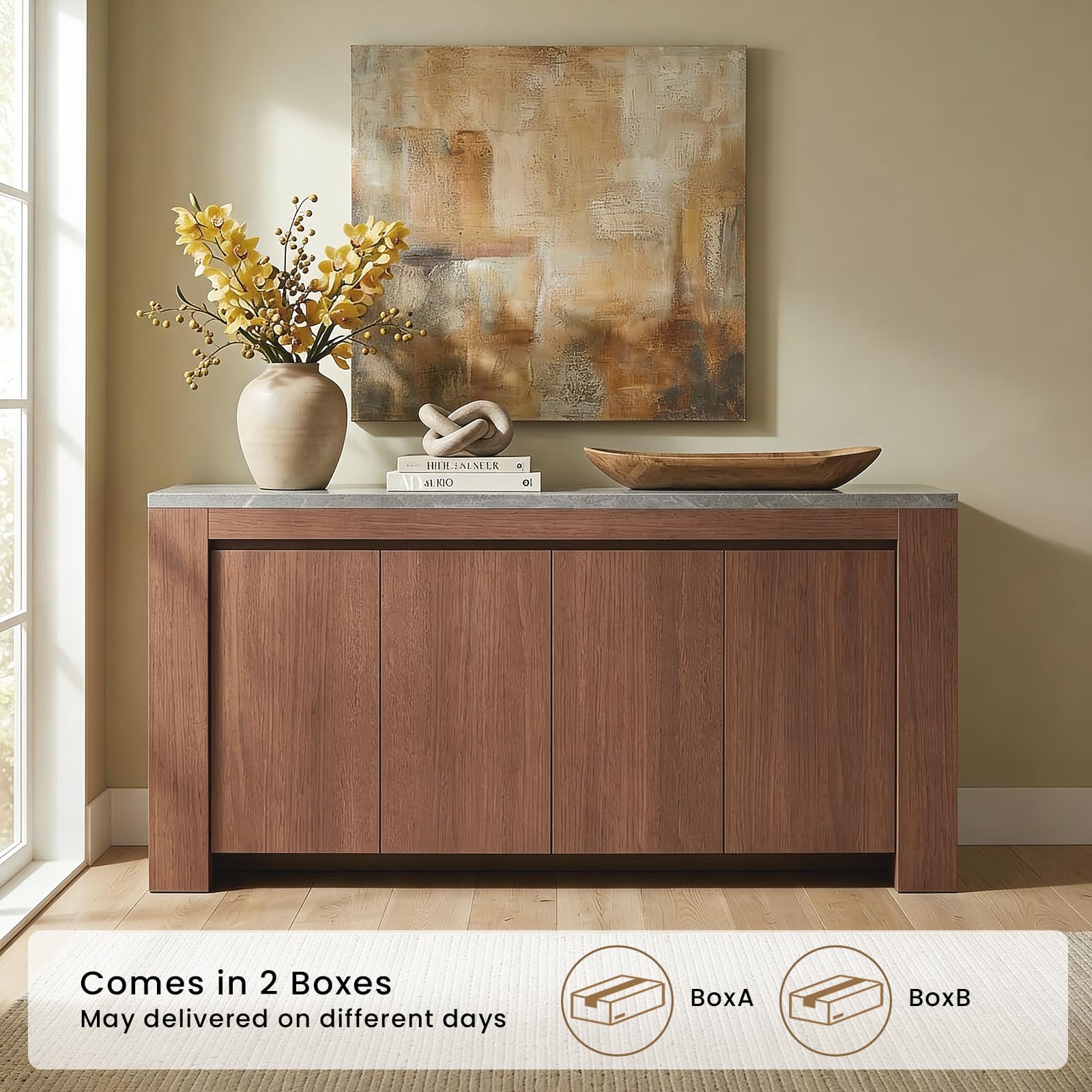 - Multi-Room Versatility: Functions as TV stand, credenza, storage cabinet, or entryway console