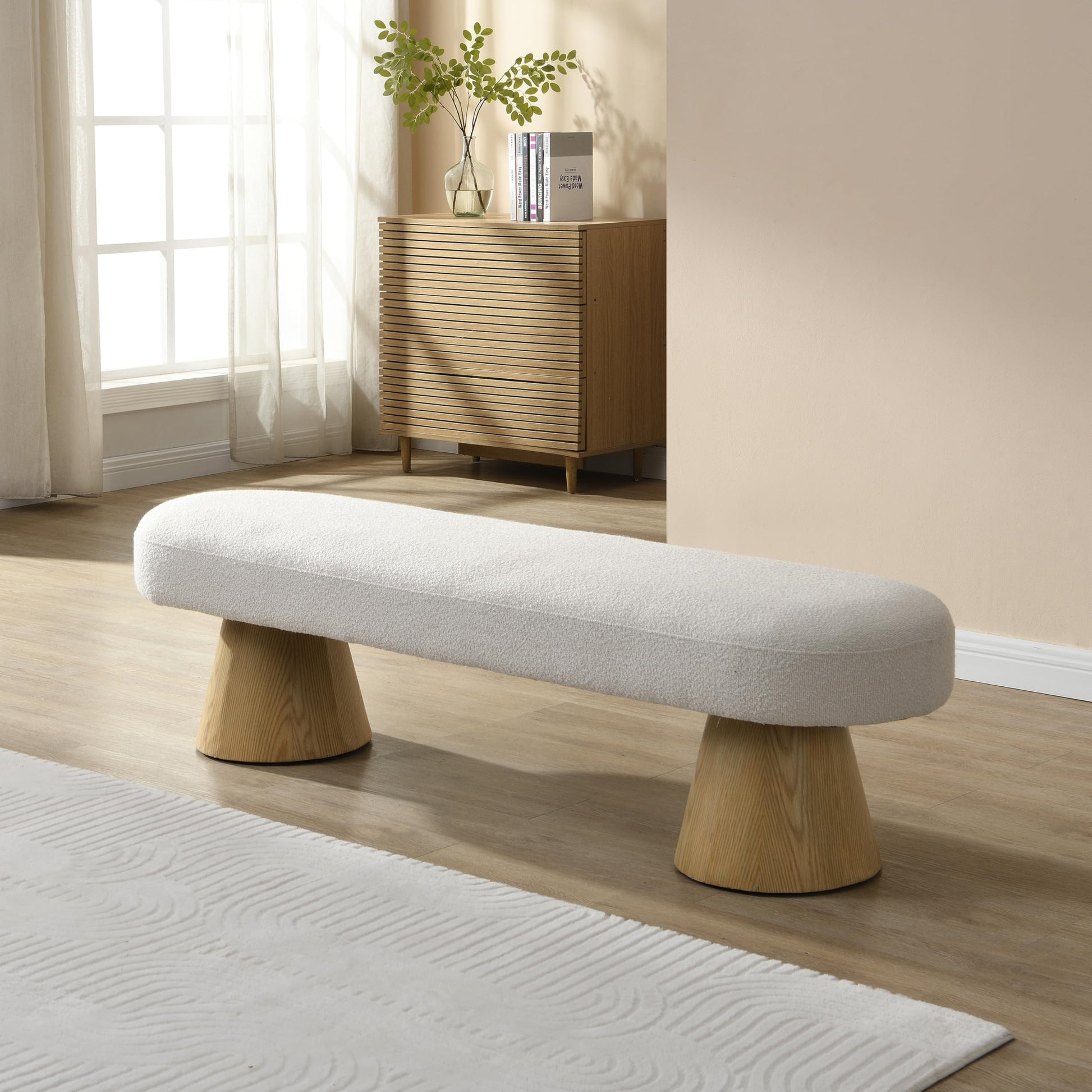 This versatile oval dining bench features premium boucle upholstery with a 6" high-density foam core designed to resist permanent indentations. Perfect for dining rooms, entryways, or as a bedside stool, this multi-functional bench maintains its shape through daily use.