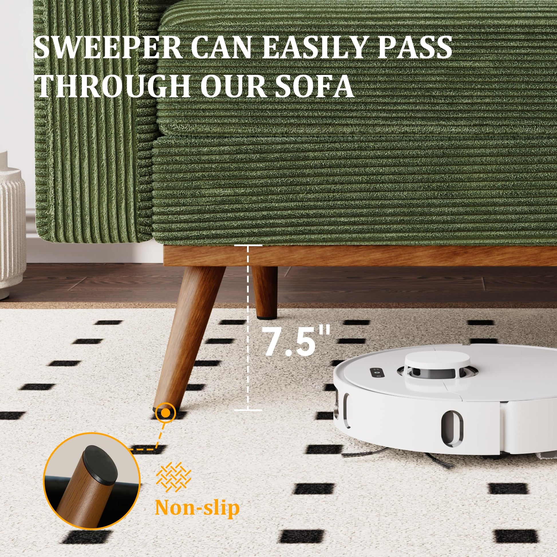 - Premium green corduroy fabric upholstery