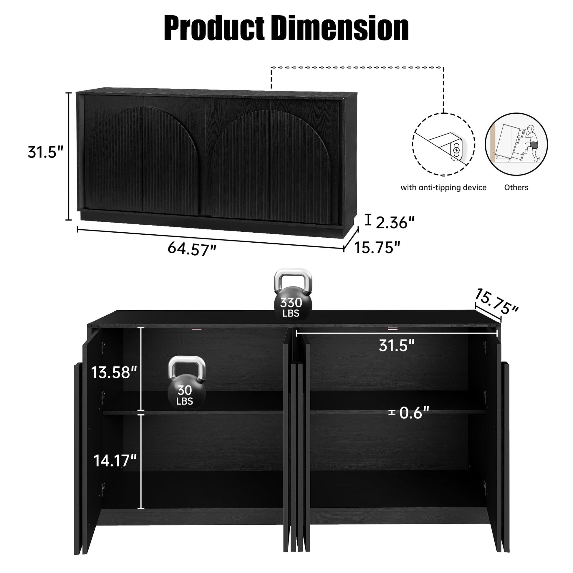 This spacious sideboard buffet cabinet combines modern elegance with practical storage solutions. Featuring a sophisticated fluted arch design with double-layer doors, this versatile piece seamlessly integrates into dining rooms, living rooms, kitchens, hallways, or entryways.