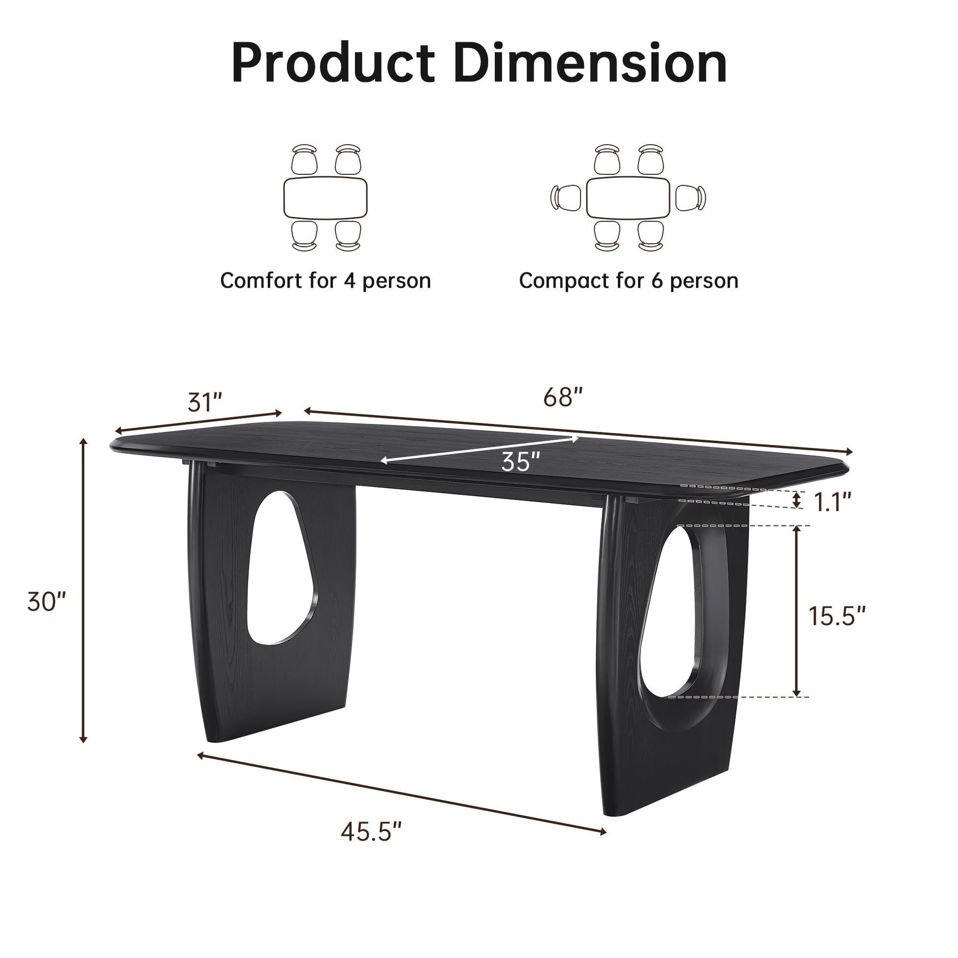 This modern rectangle dining table combines elegant design with exceptional durability, perfect for dining rooms, kitchens, and living spaces. The uniquely hollowed-out pedestal base adds artistic flair while providing superior stability.