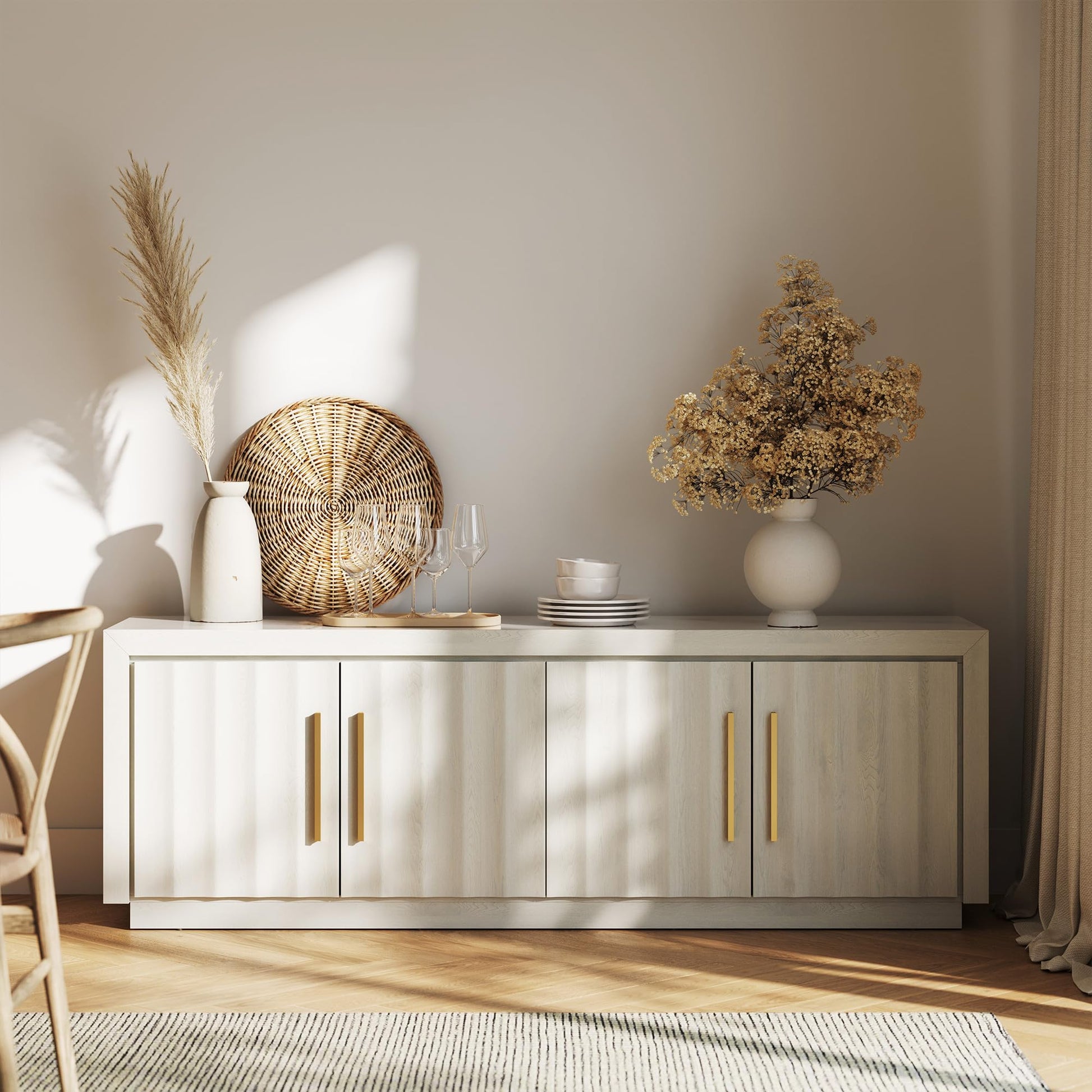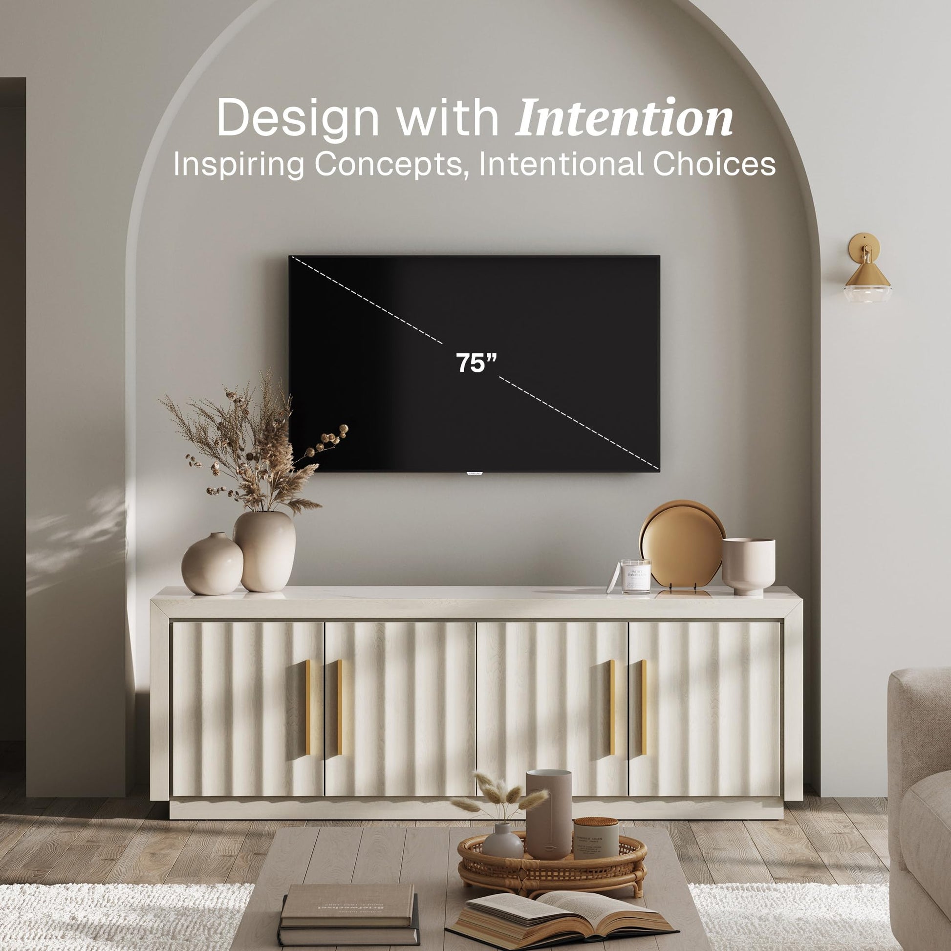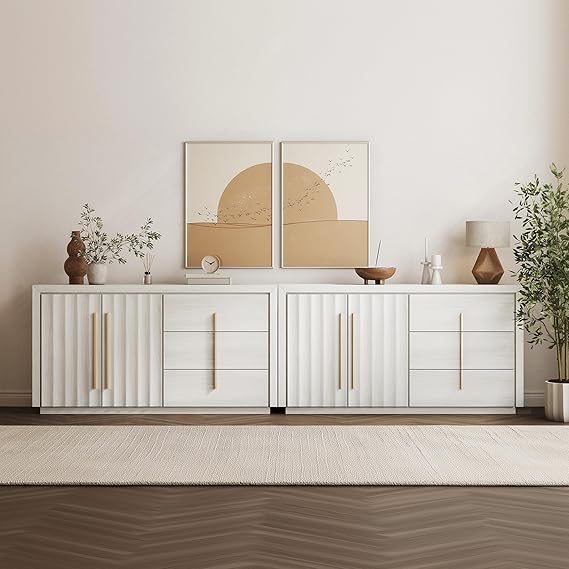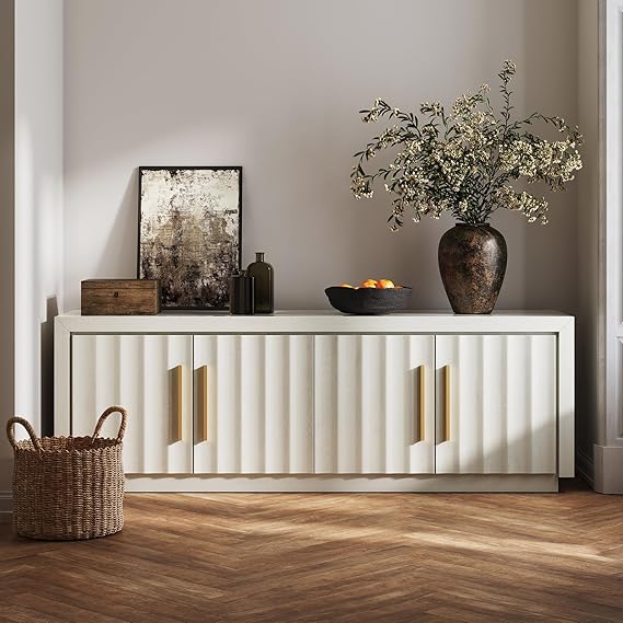 - Elegant 3D fan-pattern doors add depth and texture to your living room
