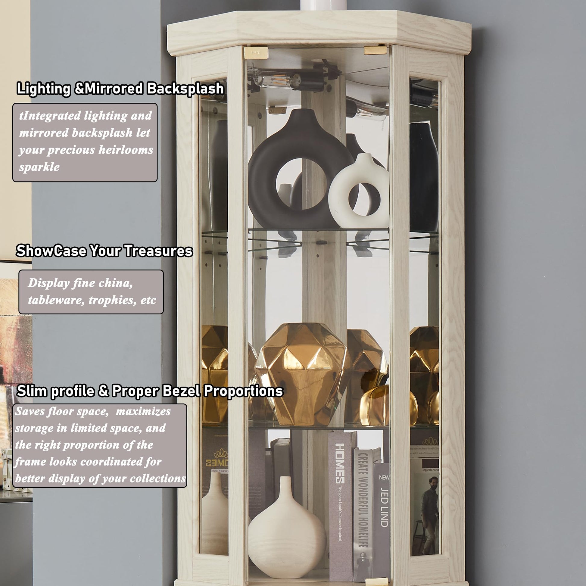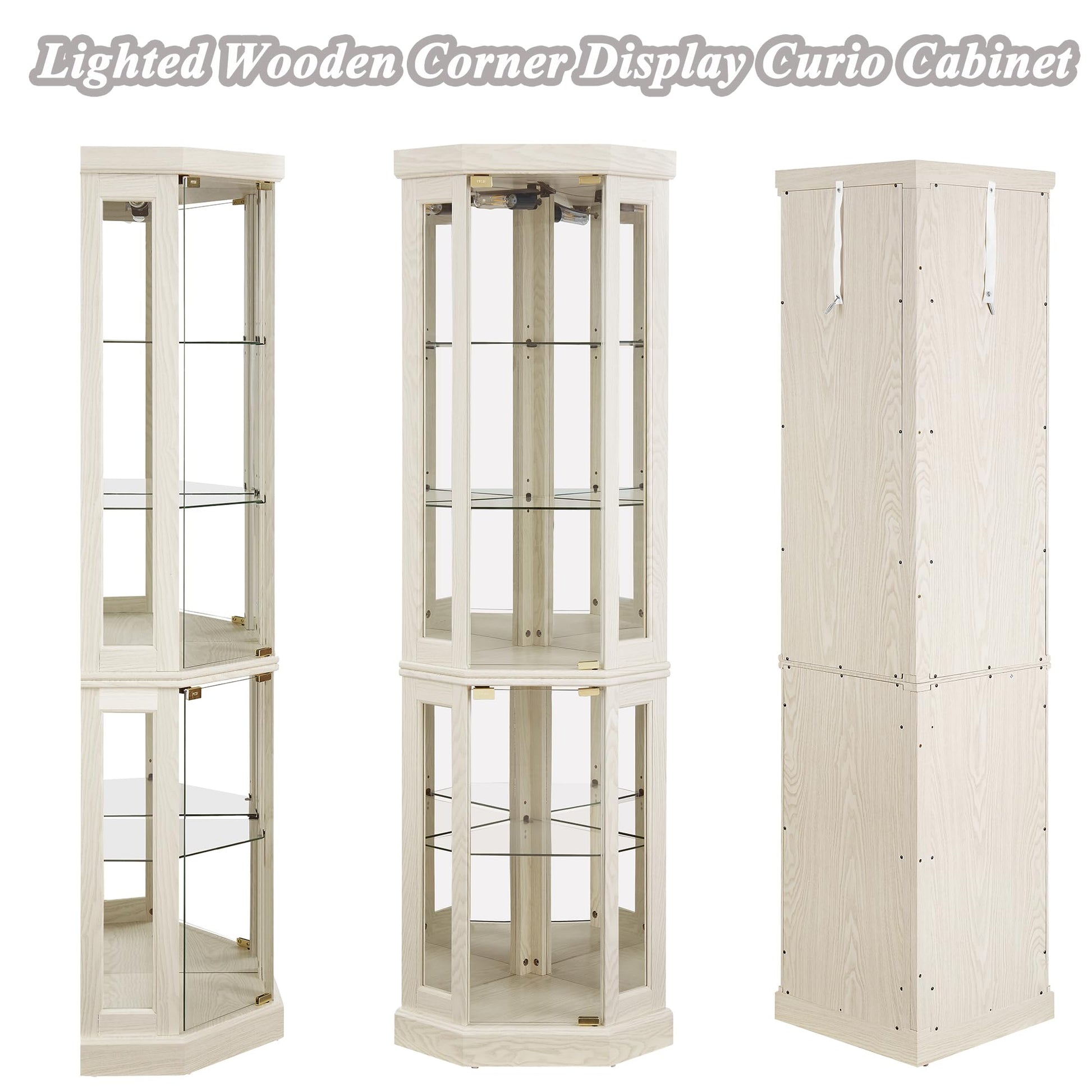 Transform your living room with this elegant lighted corner curio cabinet. Featuring tempered glass panels and a mirrored back pane, this display case beautifully showcases your collectibles, fine china, or decorative items while maximizing corner space.