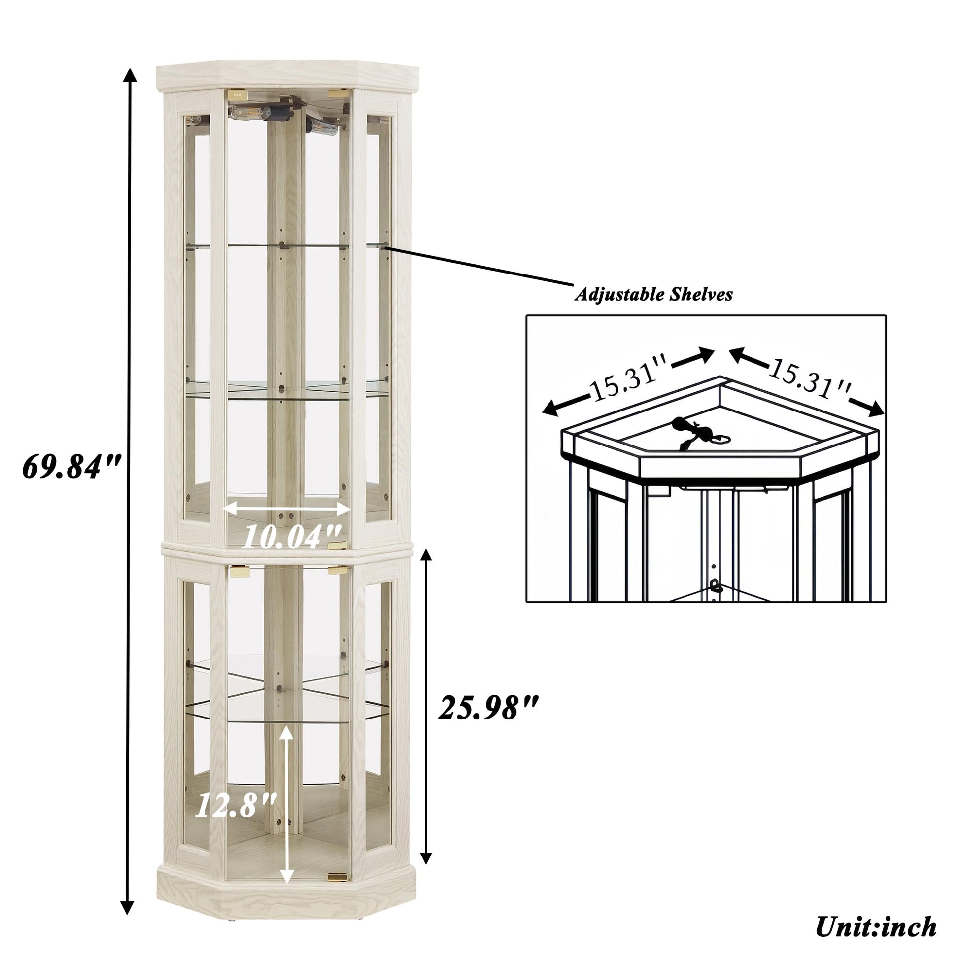69" Lighted Corner Curio Cabinet with Adjustable Shelves