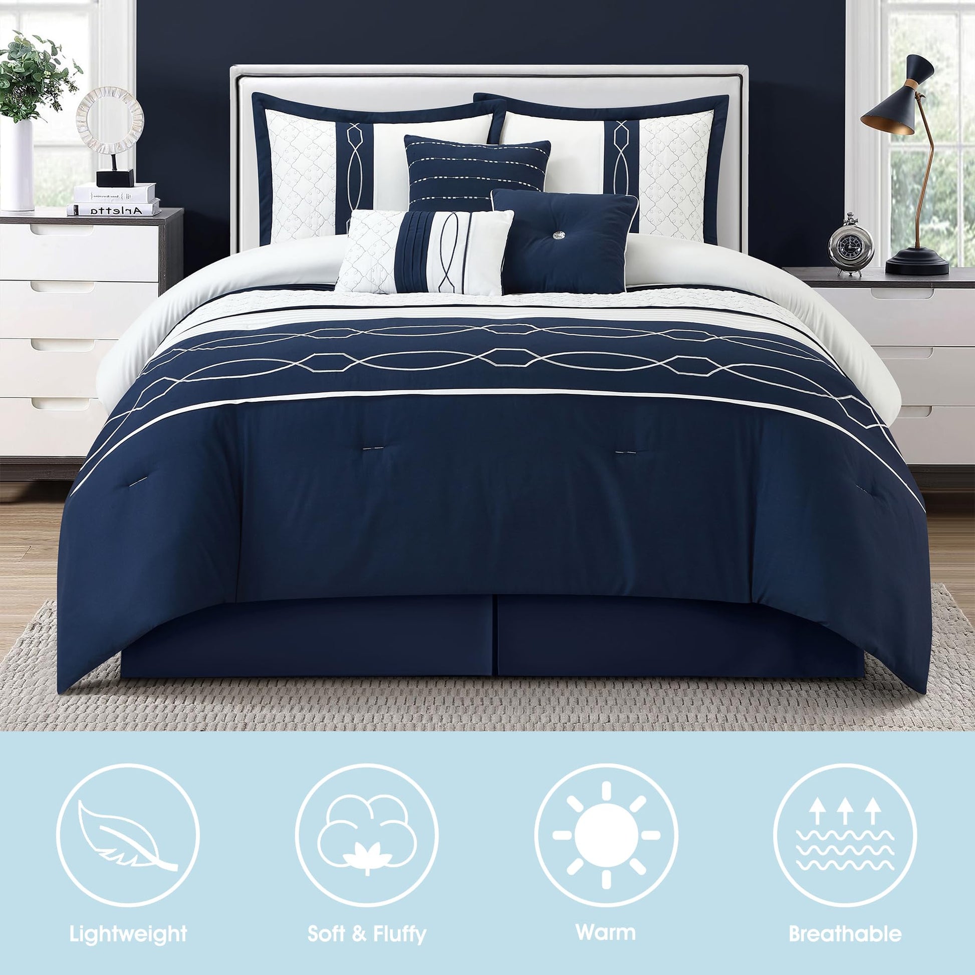 Elevate your bedroom with this luxurious 7-piece comforter set featuring a sophisticated geometric quilting pattern. Crafted from premium 100% polyester microfiber, this complete bedding ensemble combines modern elegance with exceptional comfort for year-round use.