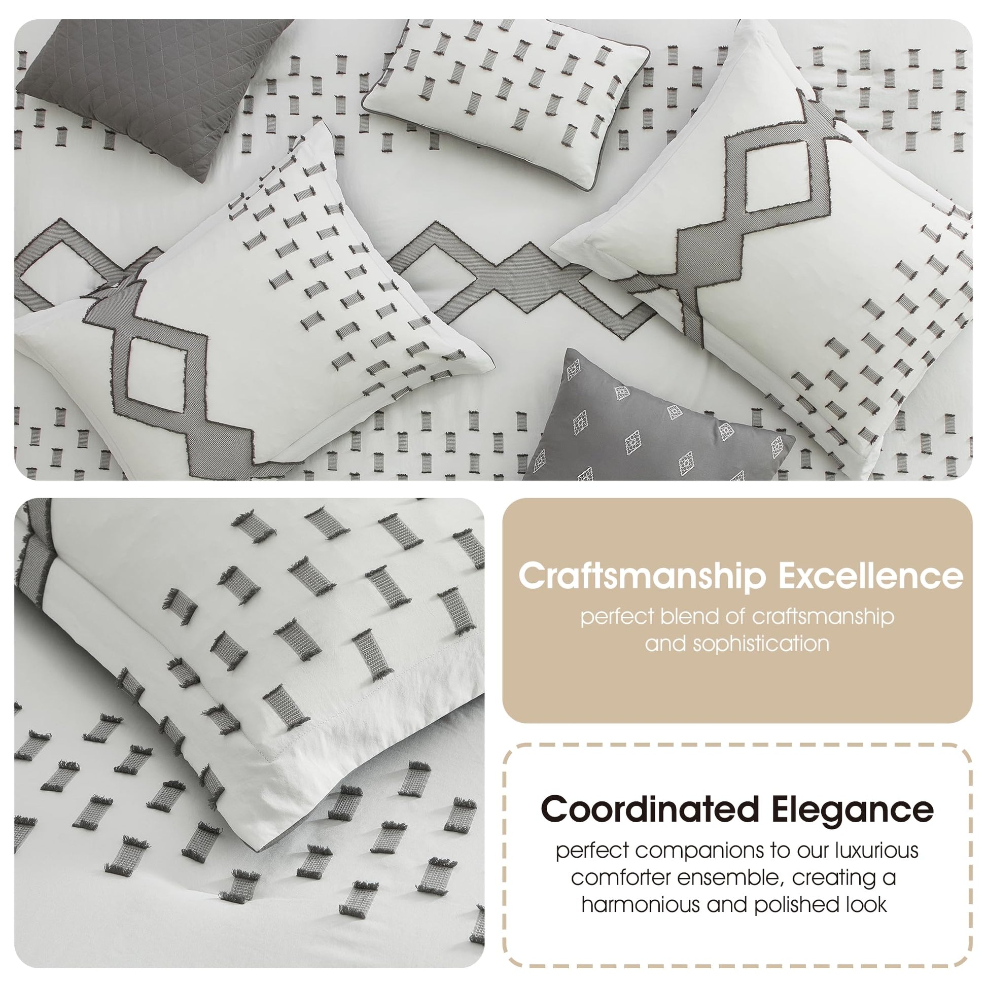 Transform your bedroom with this sophisticated 7-piece comforter set featuring a contemporary geometric clipped pattern in white and grey tones. The contrast color design brings a modern boho-chic aesthetic that elevates any bedroom décor with timeless elegance.
