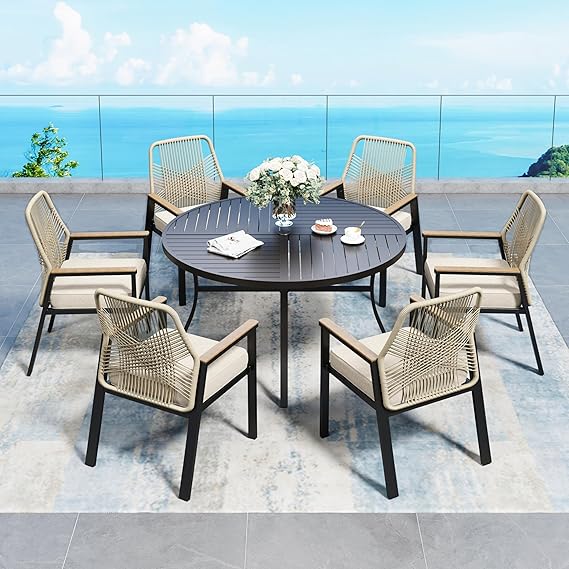 Transform your outdoor space with this complete 7-piece patio dining set, perfect for entertaining family and friends. This comprehensive outdoor furniture collection combines style, comfort, and durability for your backyard, lawn, or deck.