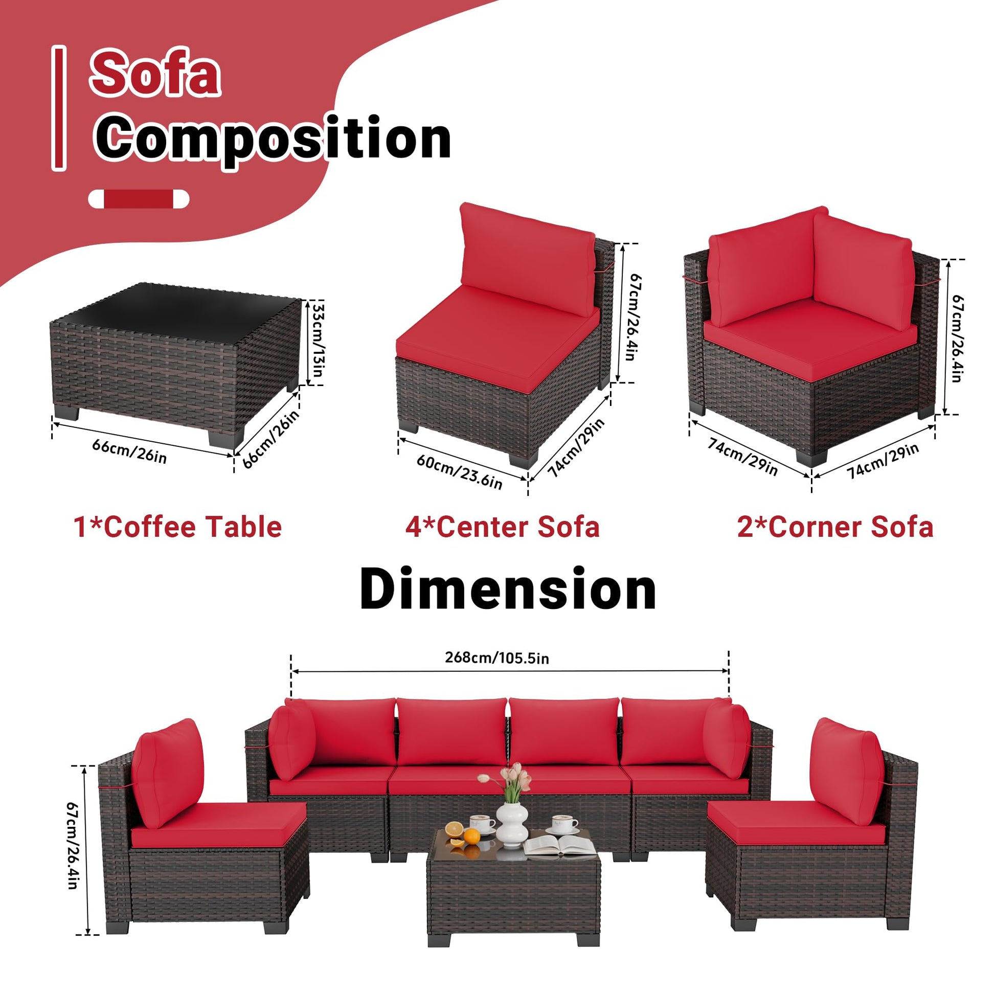 Transform your outdoor space with this versatile 7-piece patio furniture set. Featuring durable PE rattan wicker construction and a rust-resistant steel frame, this modular sectional set offers both style and functionality for your patio, garden, or balcony.