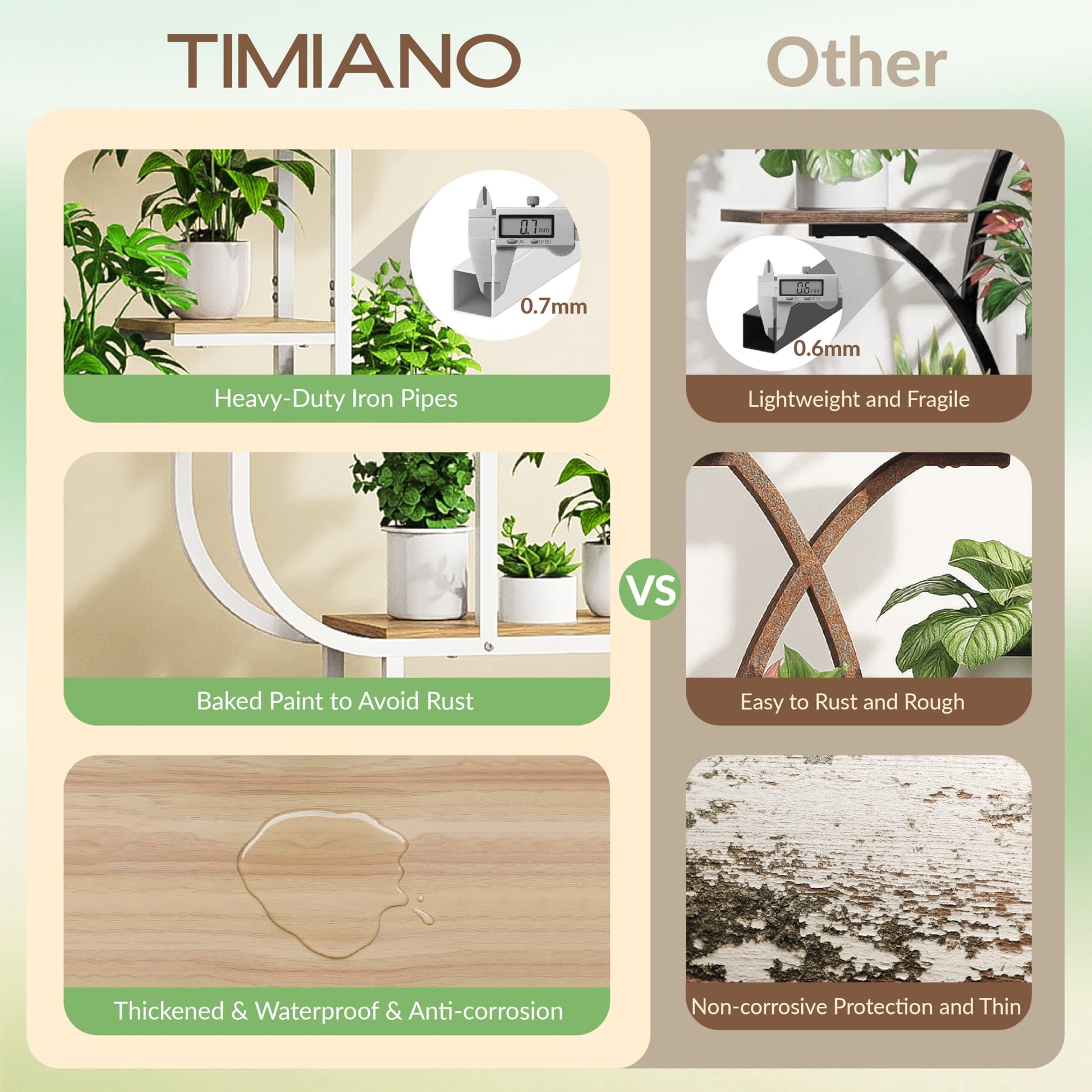 - Sturdy construction supports multiple plants