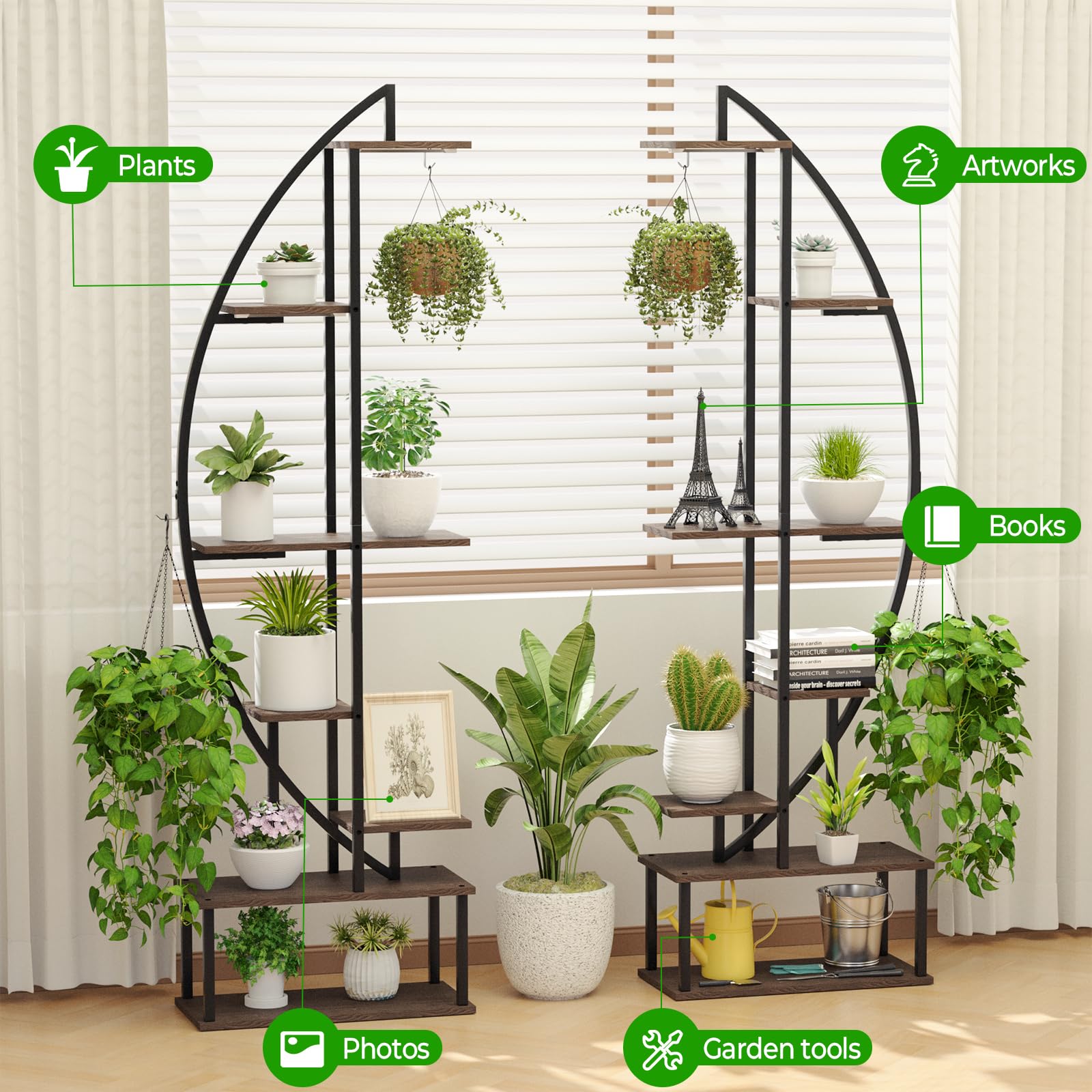- Versatile Storage: Beyond plants, use it to display photos, artwork, books, or garden tools