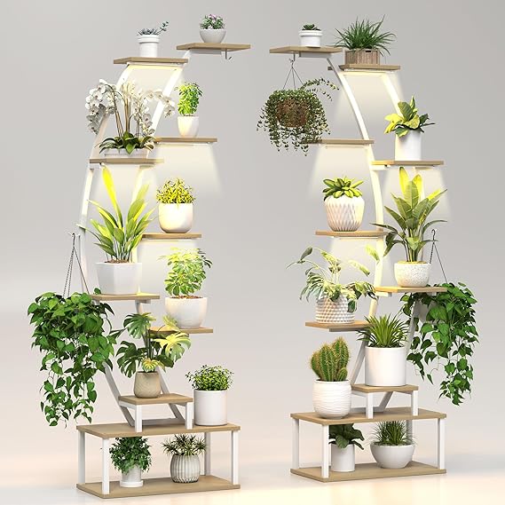 Transform your indoor gardening with this versatile 7-tier plant stand featuring integrated grow lights. The semicircular design maximizes space while providing ample room for up to 18 planters, making it perfect for plant enthusiasts who want to create a stunning vertical garden display.