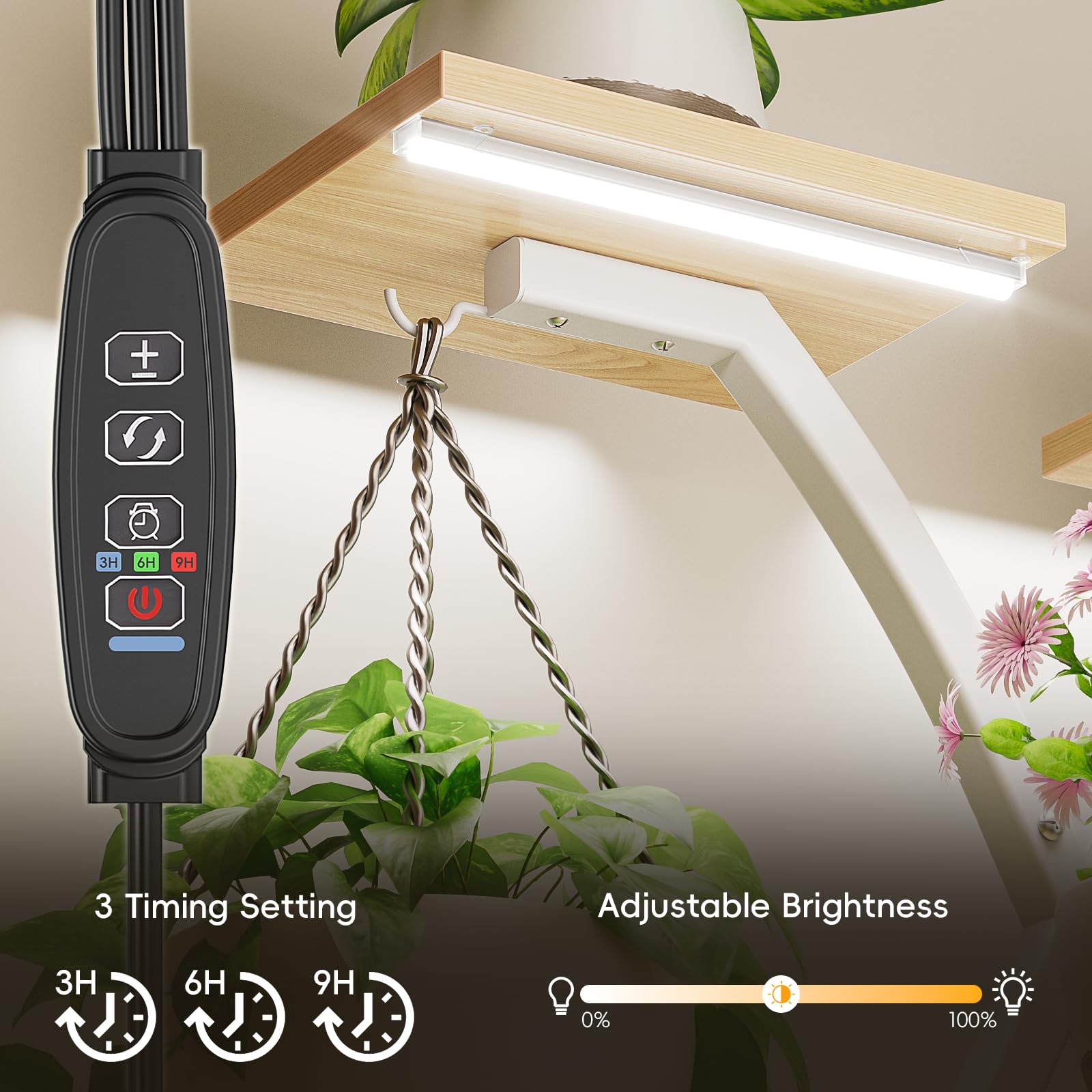 This tall corner plant shelf combines functionality with modern design, offering ample display space for your plant collection. The built-in grow lights ensure your plants receive optimal light exposure, promoting healthy growth even in low-light environments.