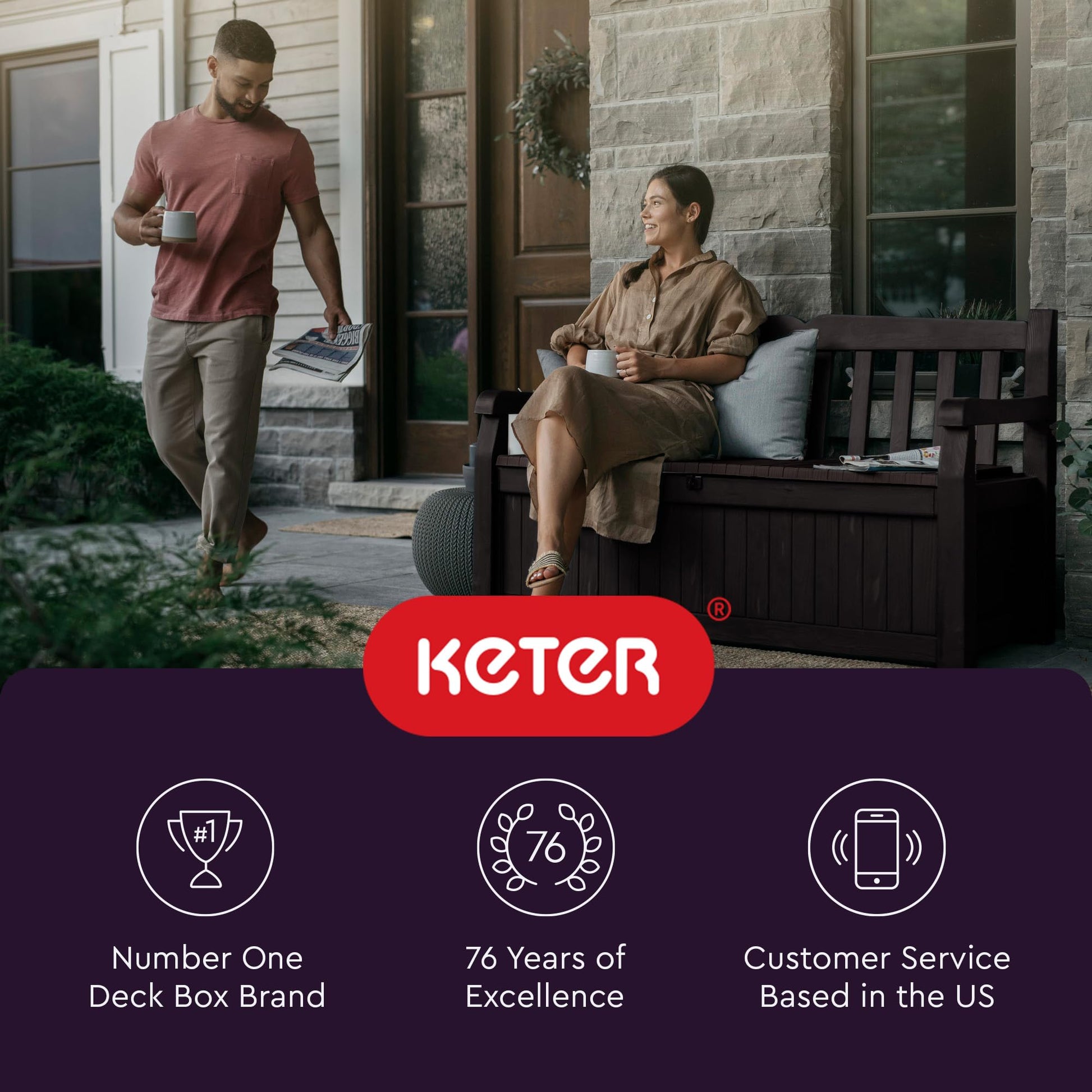 Transform your outdoor space with this versatile storage bench that combines 70 gallons of hidden storage capacity with comfortable seating for two to three people. The weather-resistant resin construction with wood-look texture provides durability without the maintenance concerns of real wood or metal.