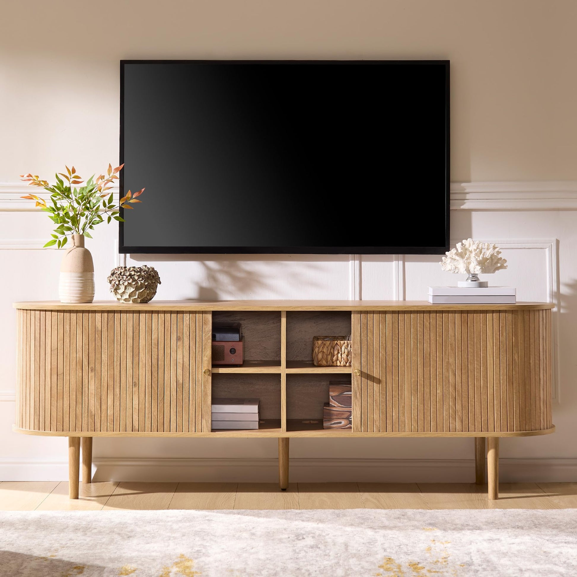 70" Mid-Century Modern TV Stand with Fluted Storage