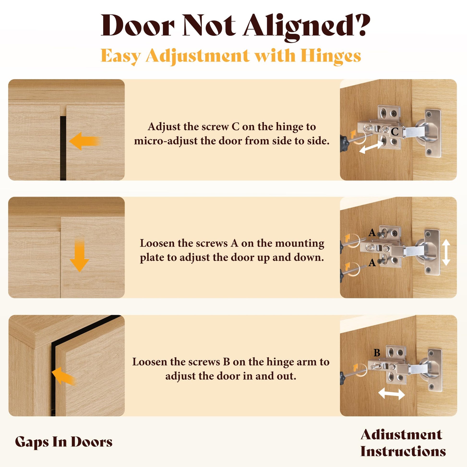 - Soft-close hinges for quiet operation
