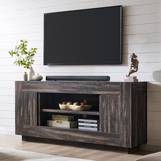 This modern entertainment center combines functionality with elegant design, perfect for living rooms and media spaces. The spacious open storage area accommodates TVs up to 80 inches, while side cabinets provide ample concealed storage for media equipment, gaming consoles, and accessories.
