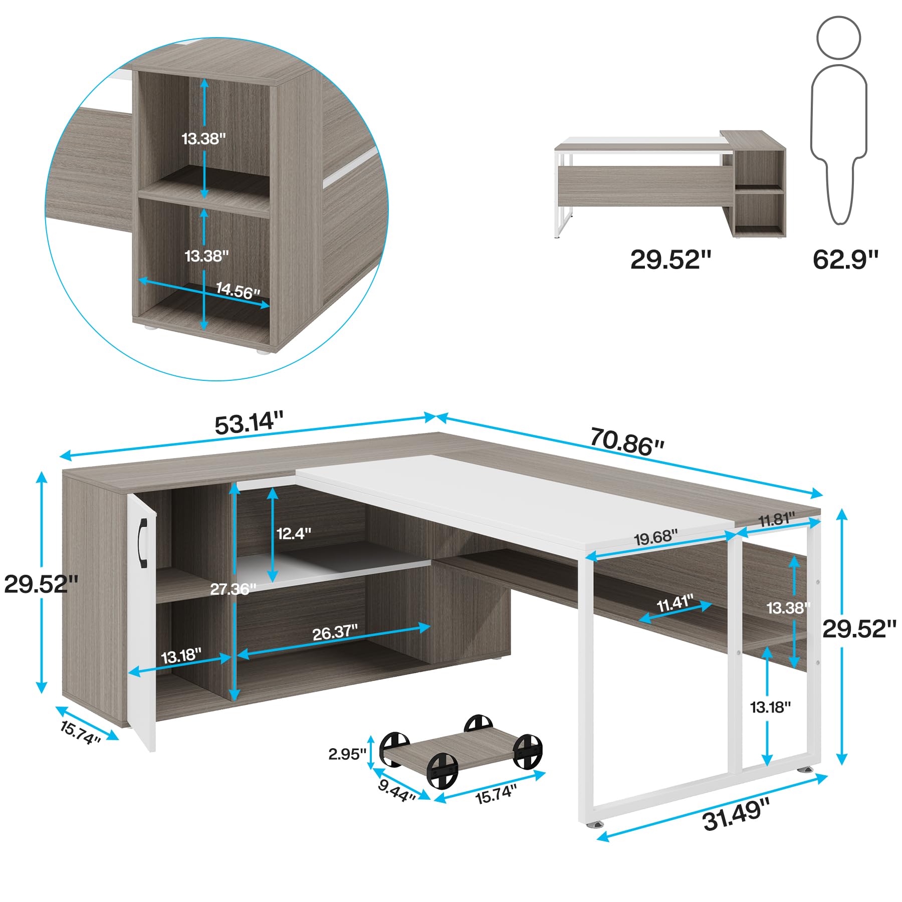 71 Inch Executive L-Shaped Desk with Cabinet Storage