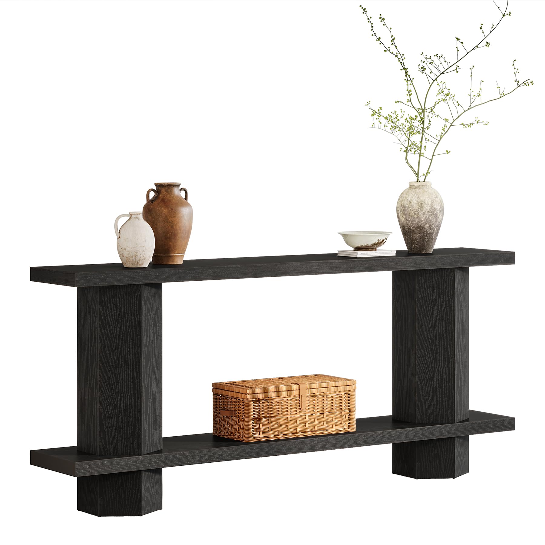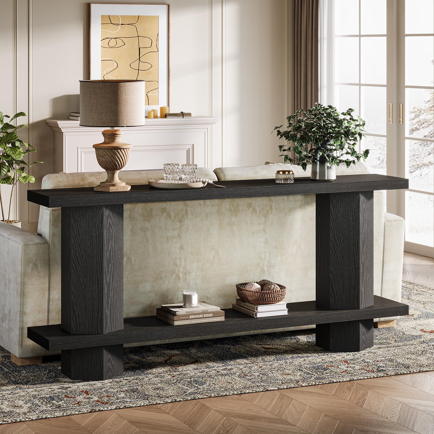 Elevate your entryway, living room, or hallway with this stunning 71-inch long console table. Featuring a captivating black finish and unique hexahedron leg design, this wooden sofa table seamlessly blends bold aesthetics with refined elegance.
