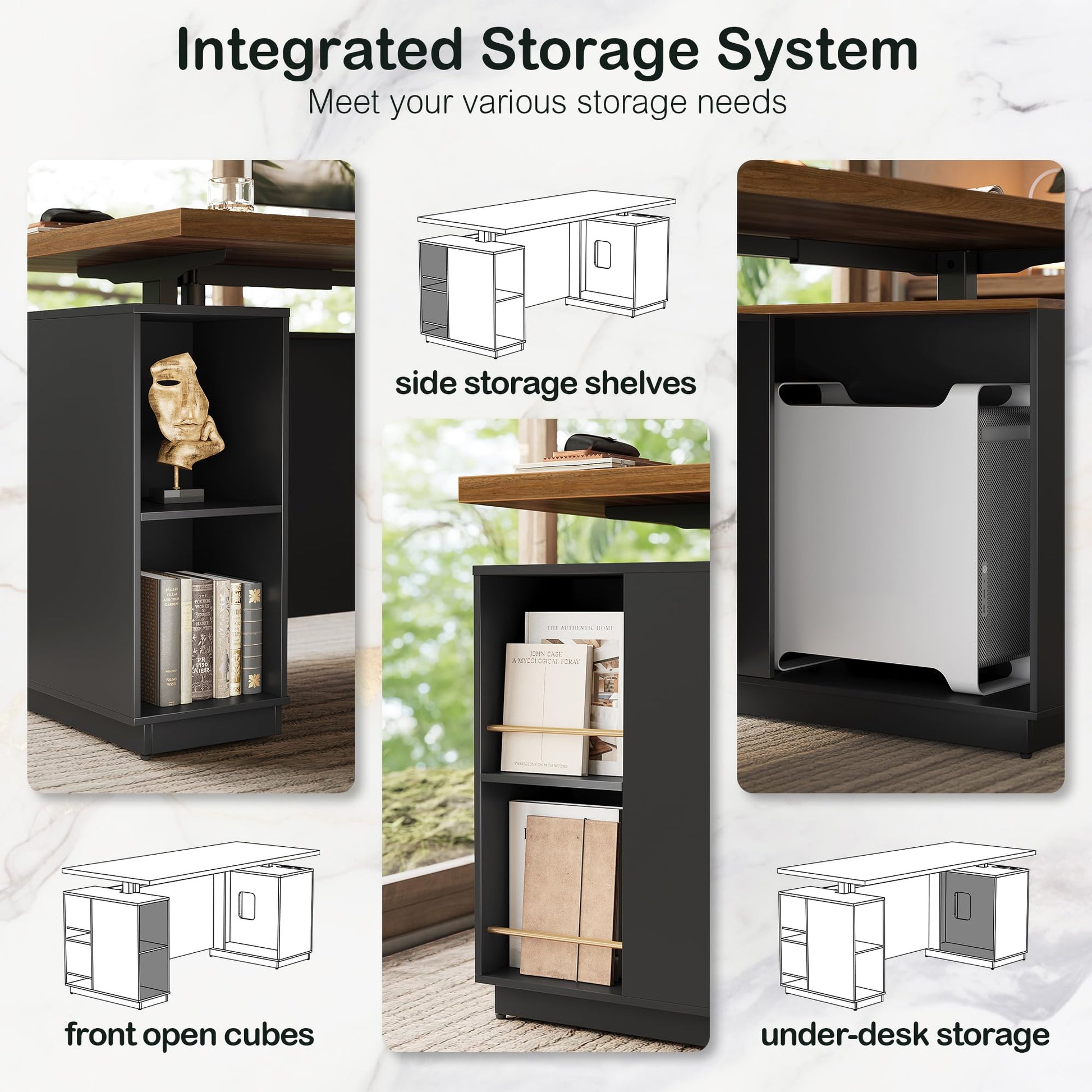 Transform your workspace with this premium electric standing desk featuring an L-shaped design and integrated storage solutions. This comprehensive furniture set combines ergonomic height adjustment with practical organization features.