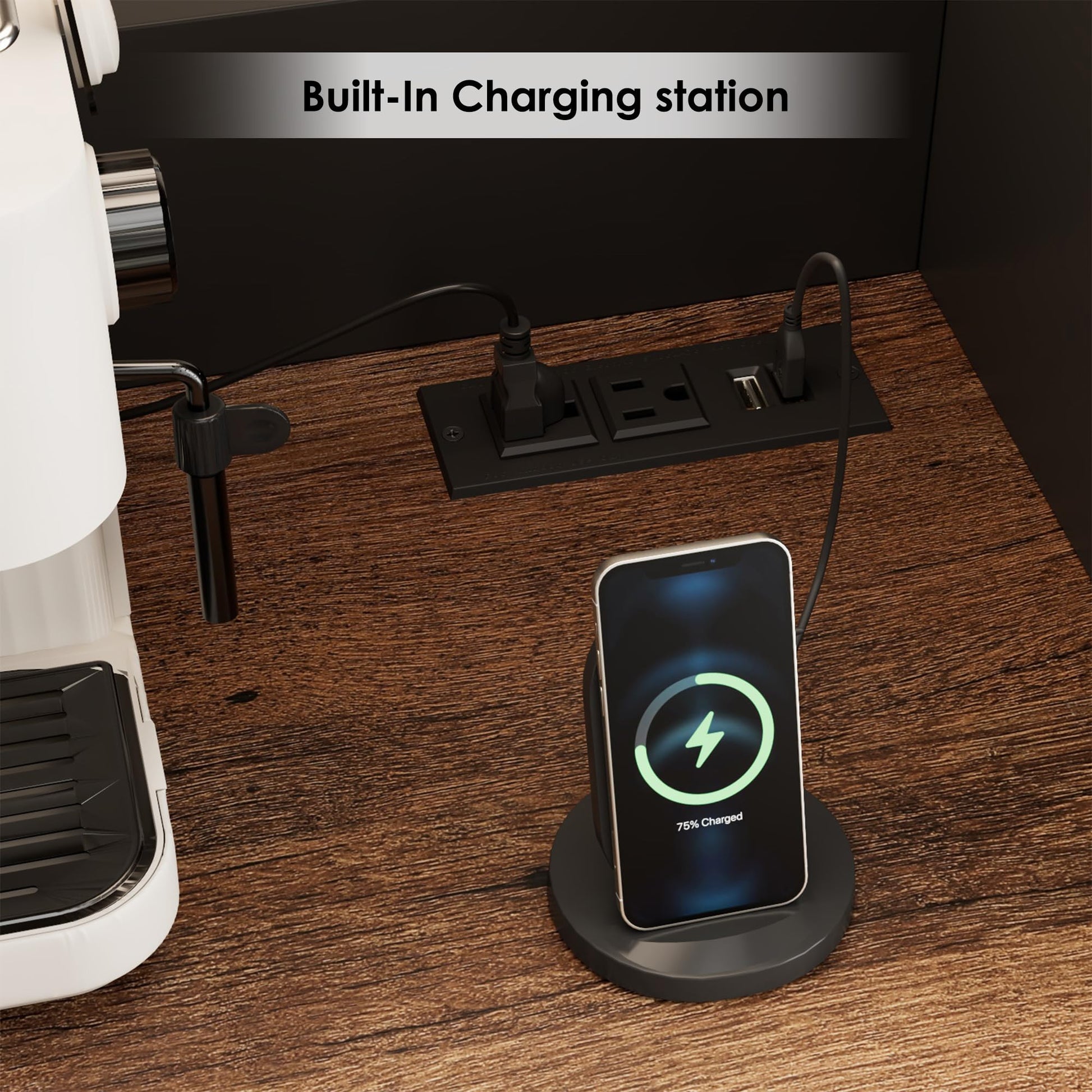 Spacious Countertop with Integrated Charging Station